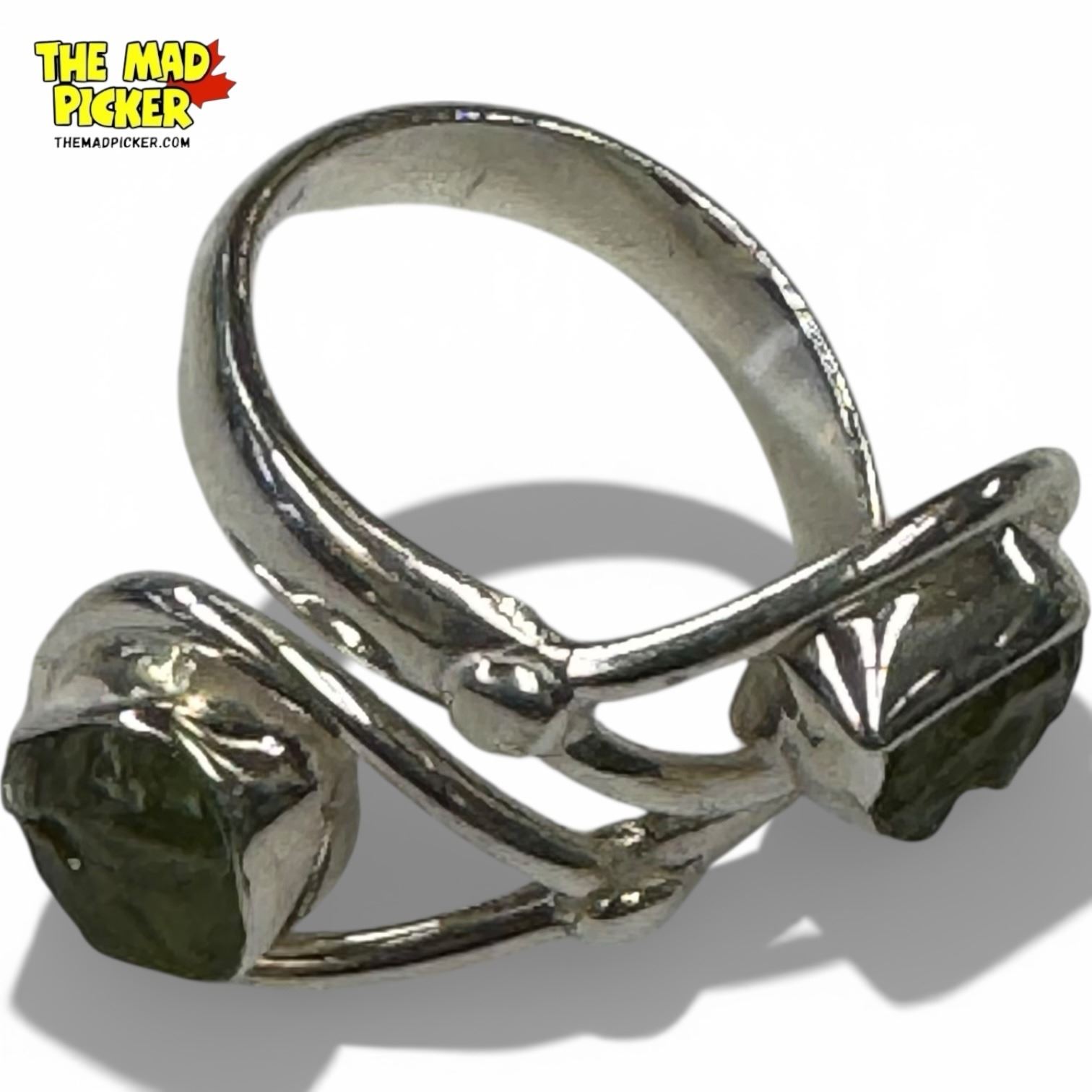 .925 Sterling Silver Moldavite Crystal Ring - Size 8 ring is 20 mm wide- Total weight: 7 grams