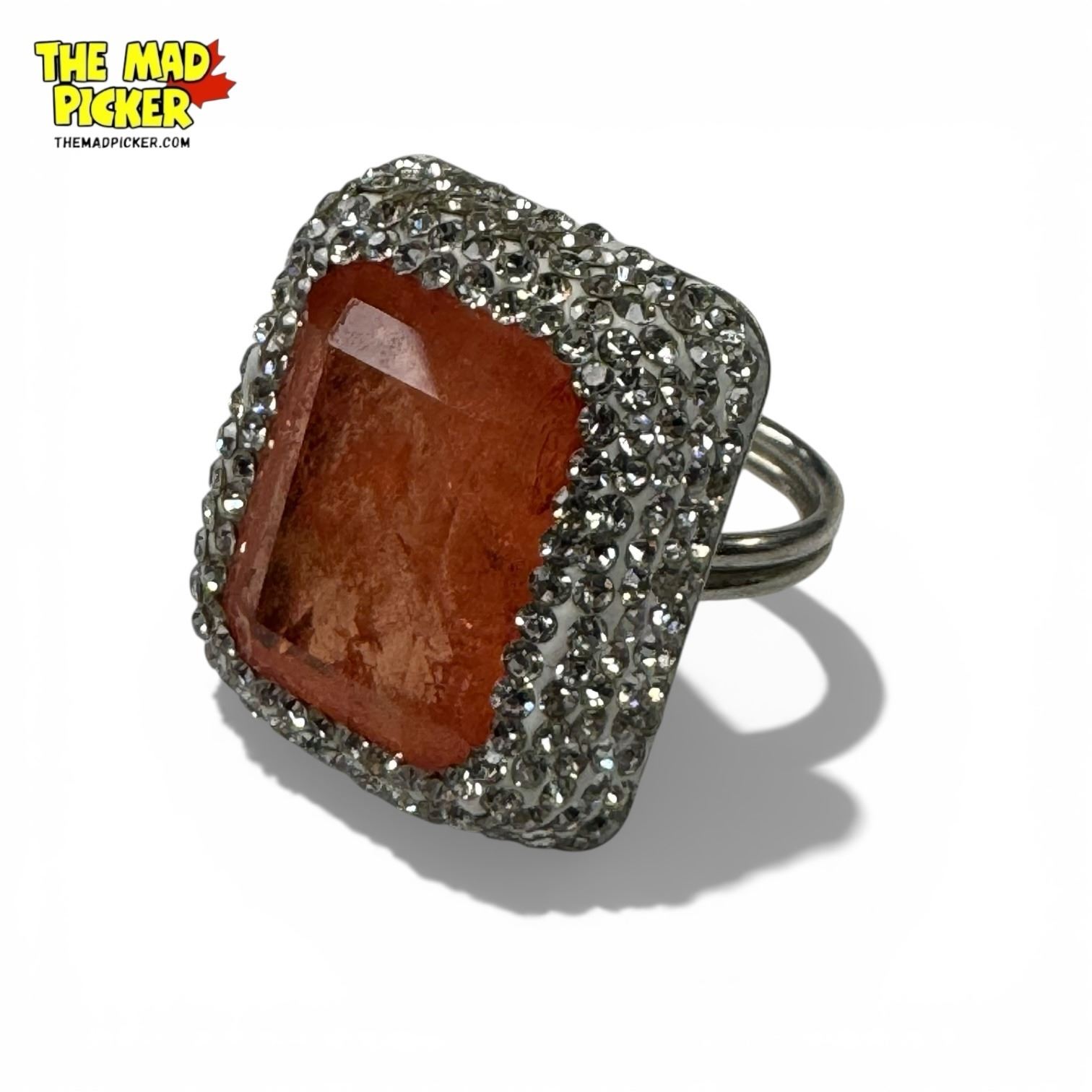.925 Sterling Silver Padparadscha Quartz Ring with Surrounded with Clear Crystals - Size 7.5 ring is 22 x 19 mm - Total weight: 6.9 grams