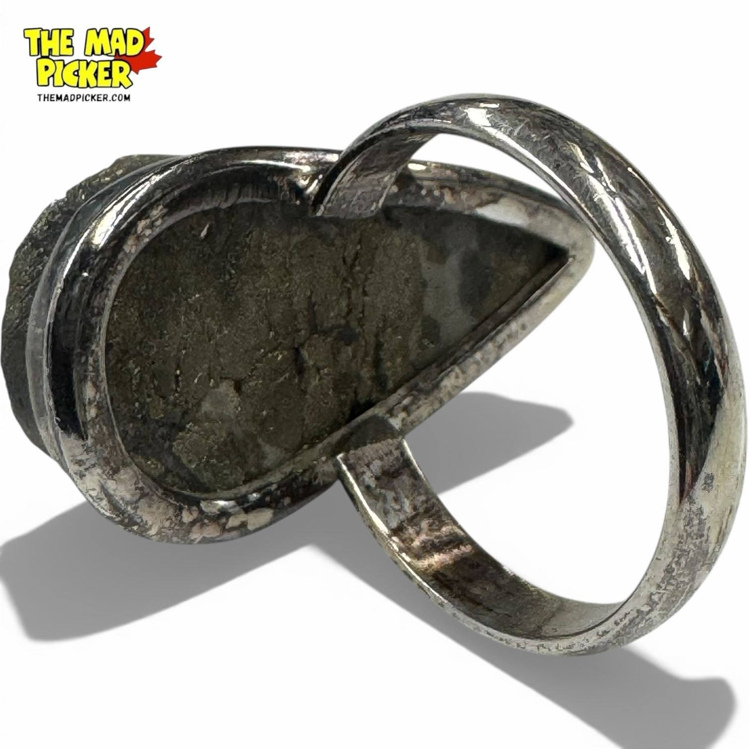 .925 Sterling Silver Pear Shaped Raw Pyrite Ring - Size 8.5 ring is 28 mm wide- Total weight:11.4 grams