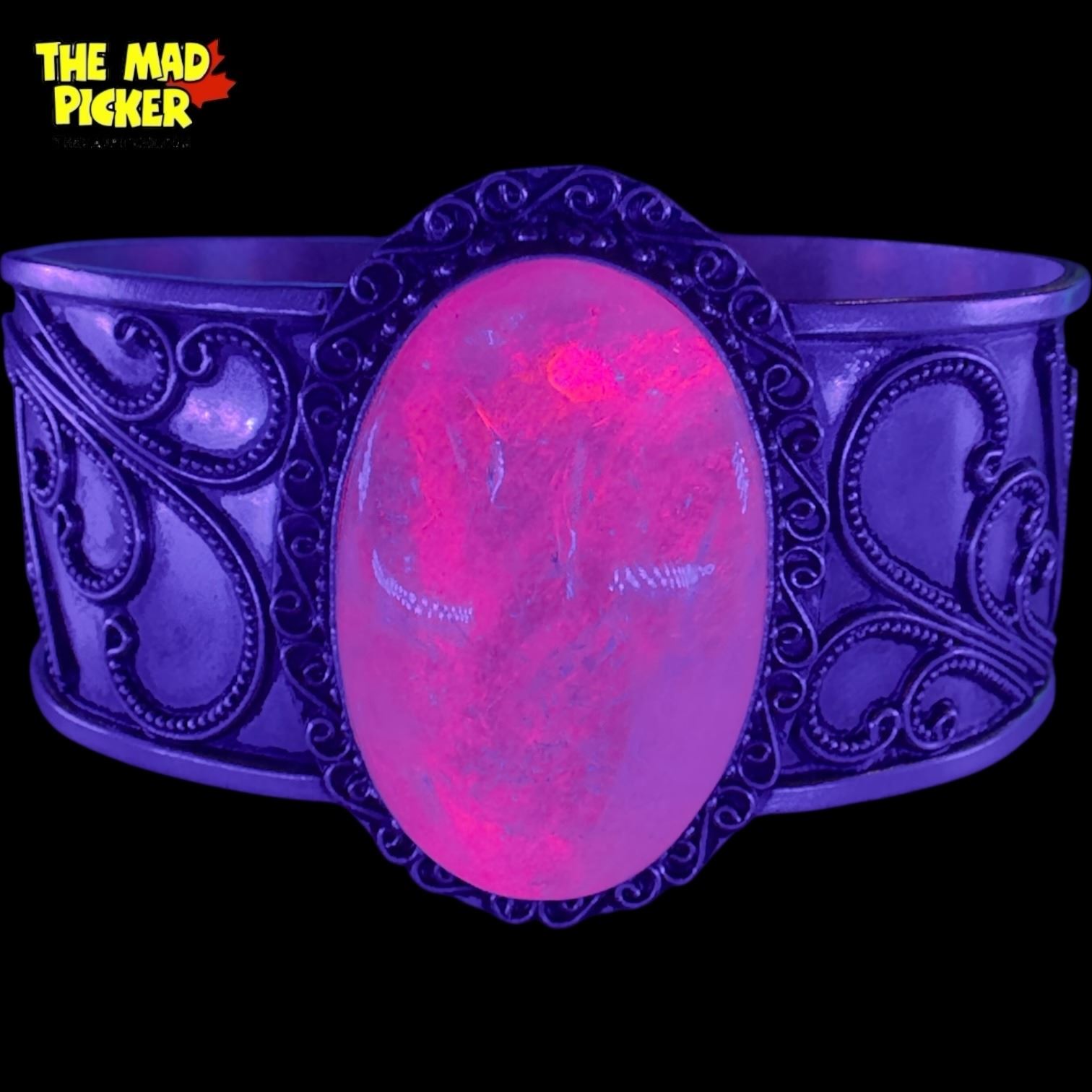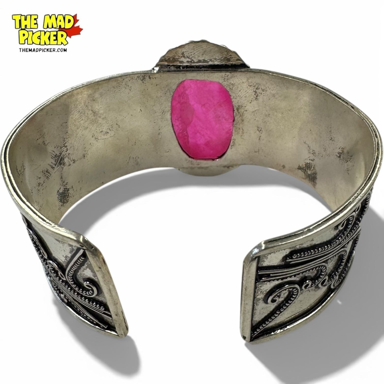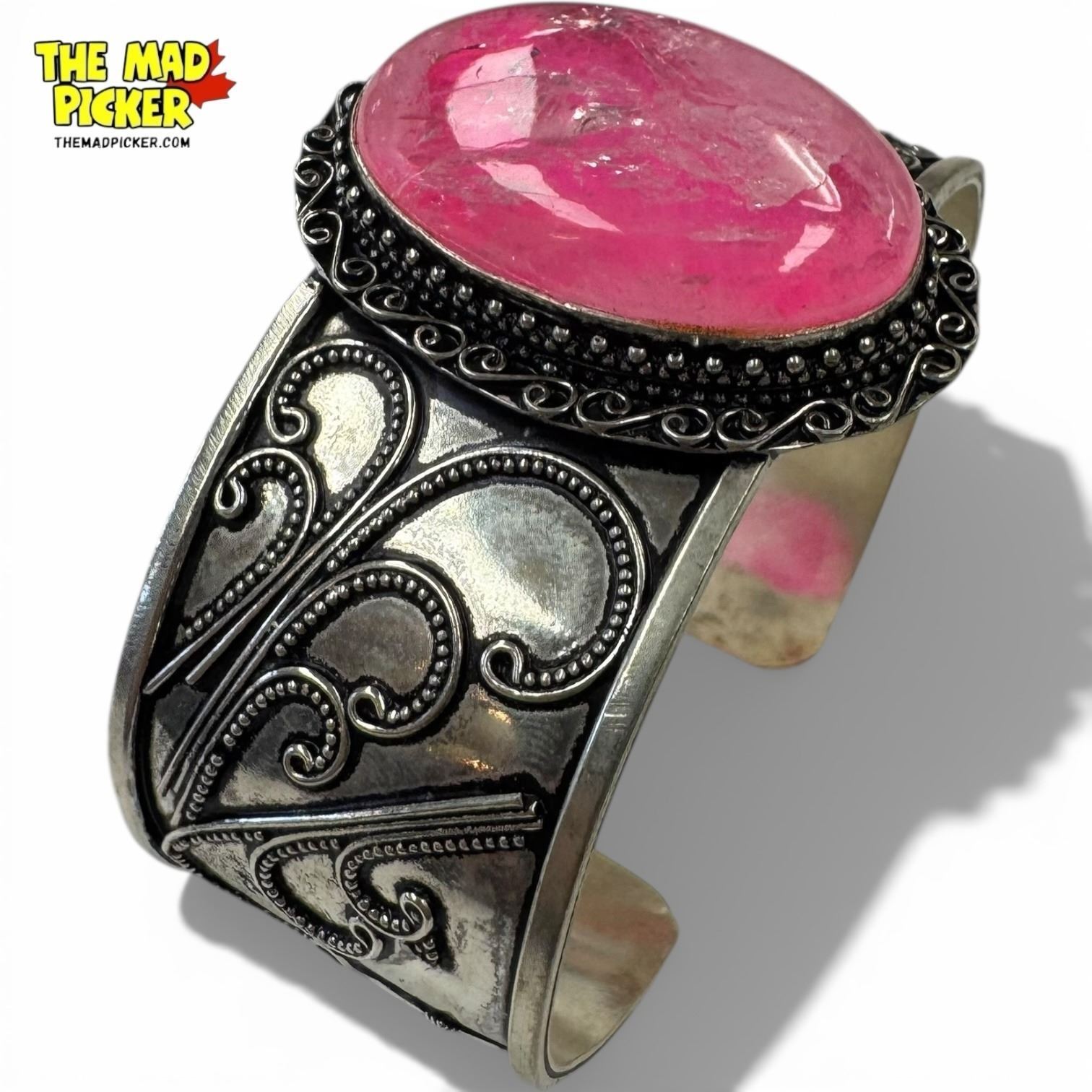 .925 Sterling Silver Pink Rhodochrosite Cuff Bracelet - 43mm wide - Weight including gemstone: 52.8 grams
