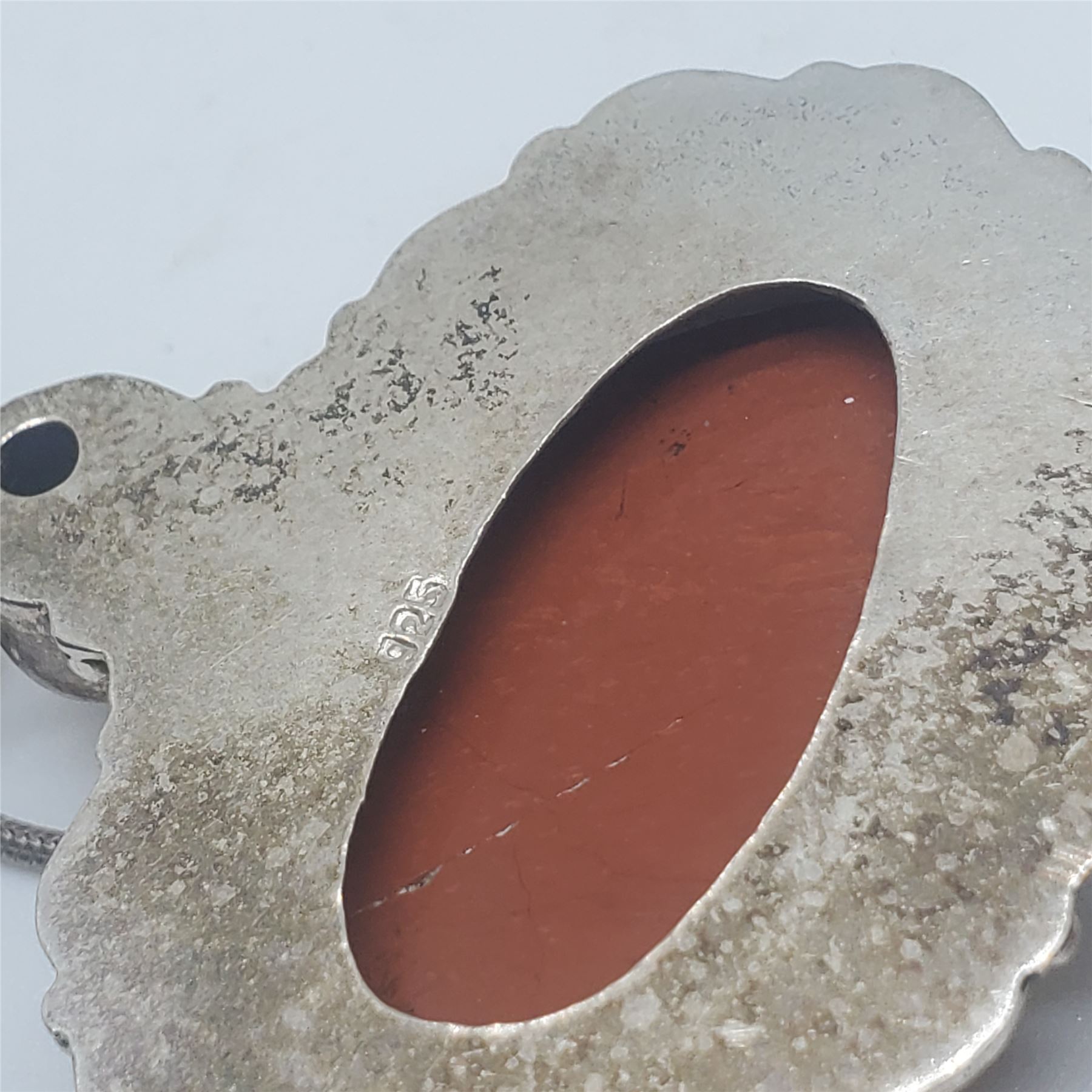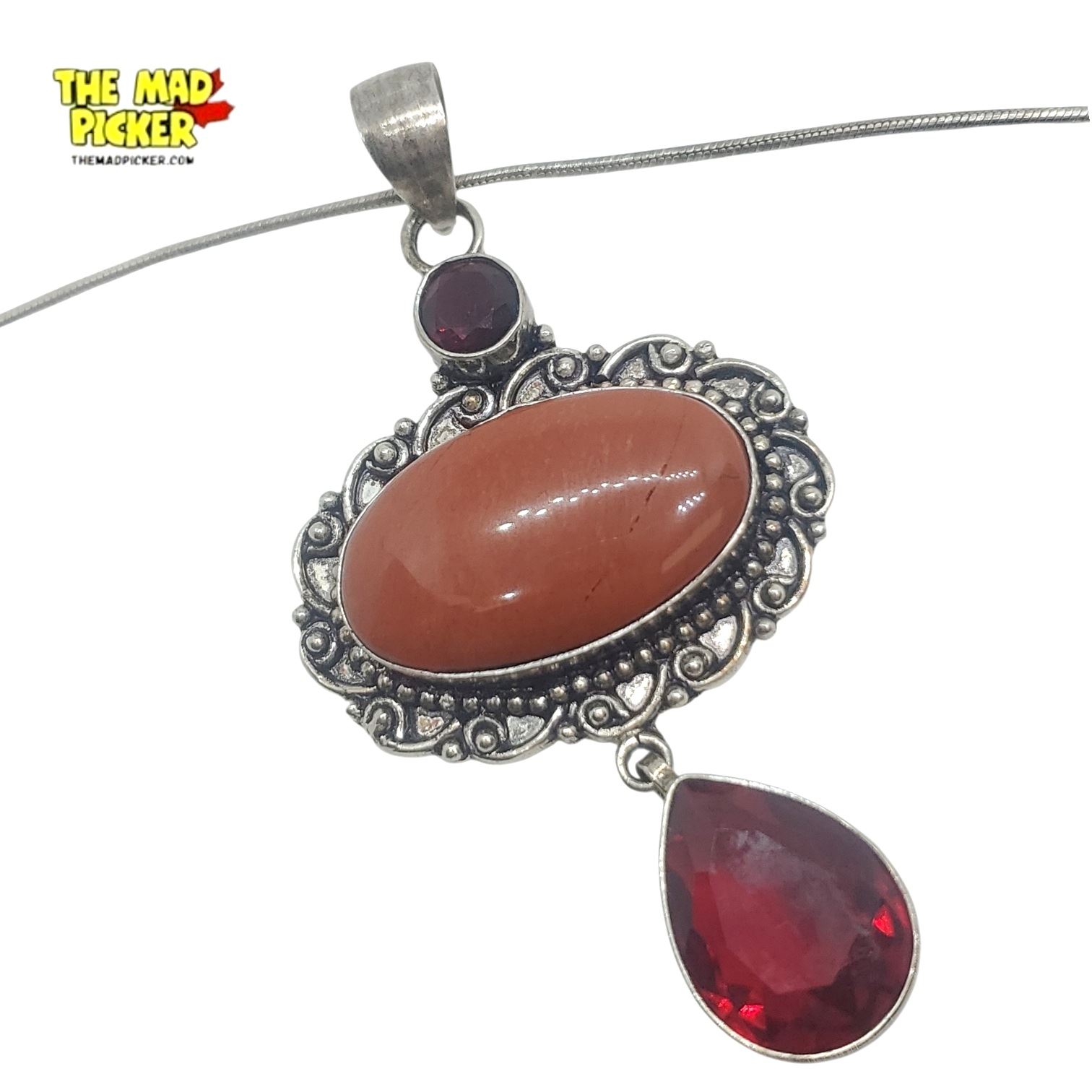 .925 Sterling Silver Red Jasper & Garnet Crystal Necklace - 42 x 80 mm pendant on 25" Sterling Chain - Total weight: 29 grams