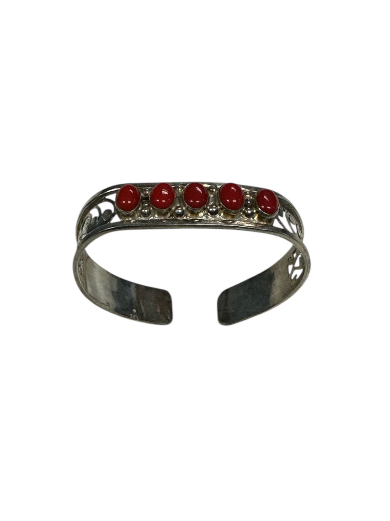 925 Sterling Silver Red Stone Bracelet Approx. 19.35