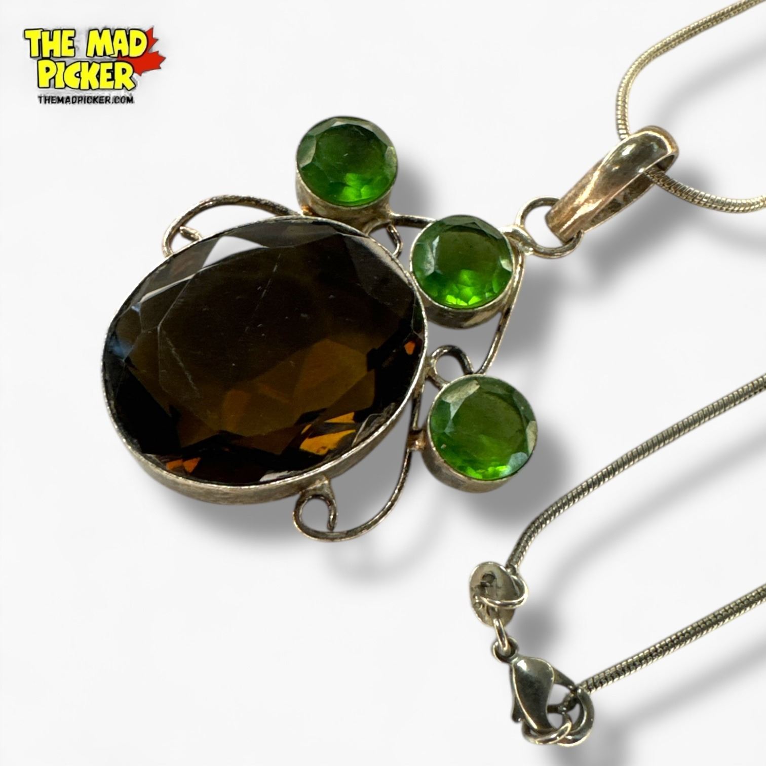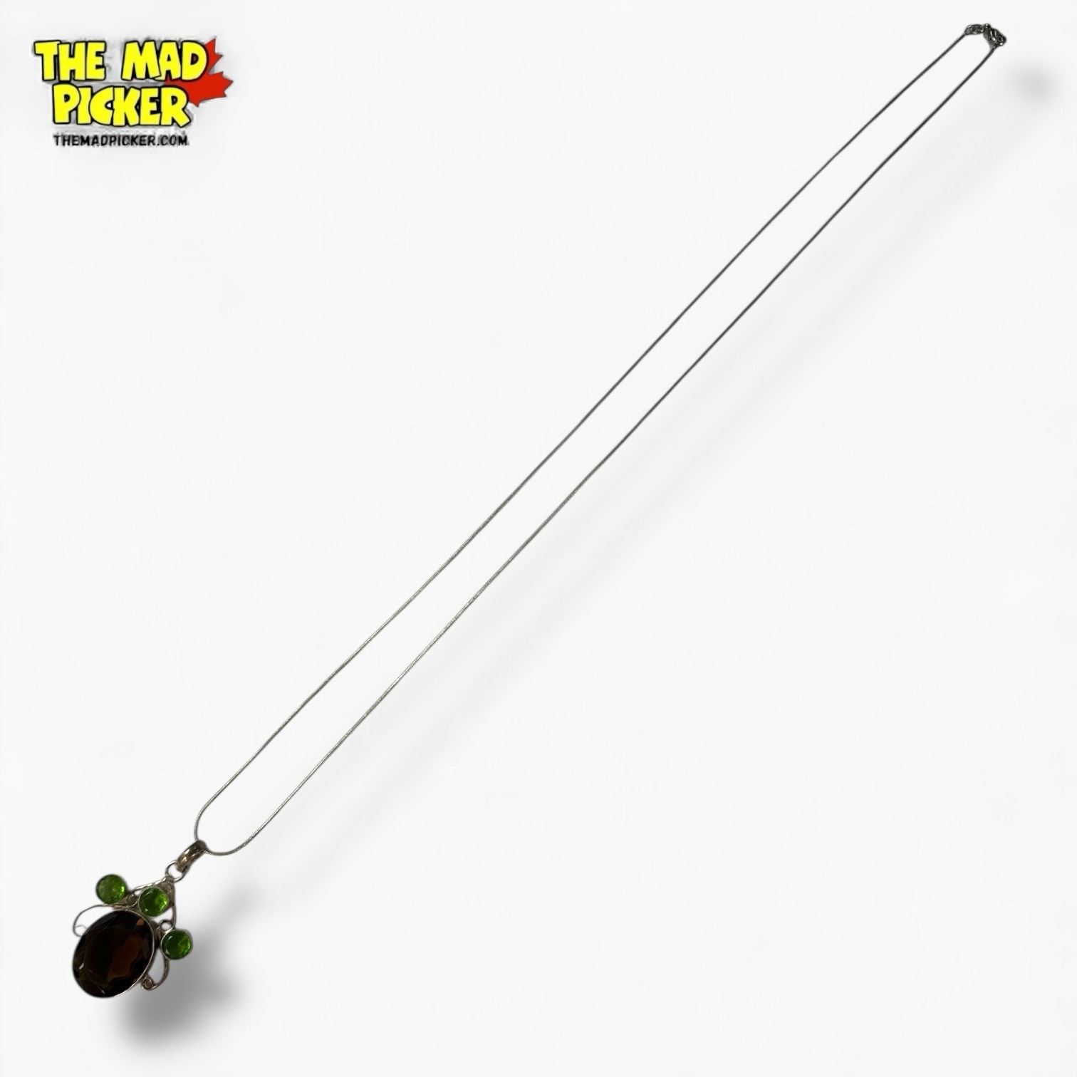 .925 Sterling Silver Topaz & Peridot Crystal Necklace - 35 x 43 mm pendant on 28" Sterling Chain - Total weight: 19.6 grams
