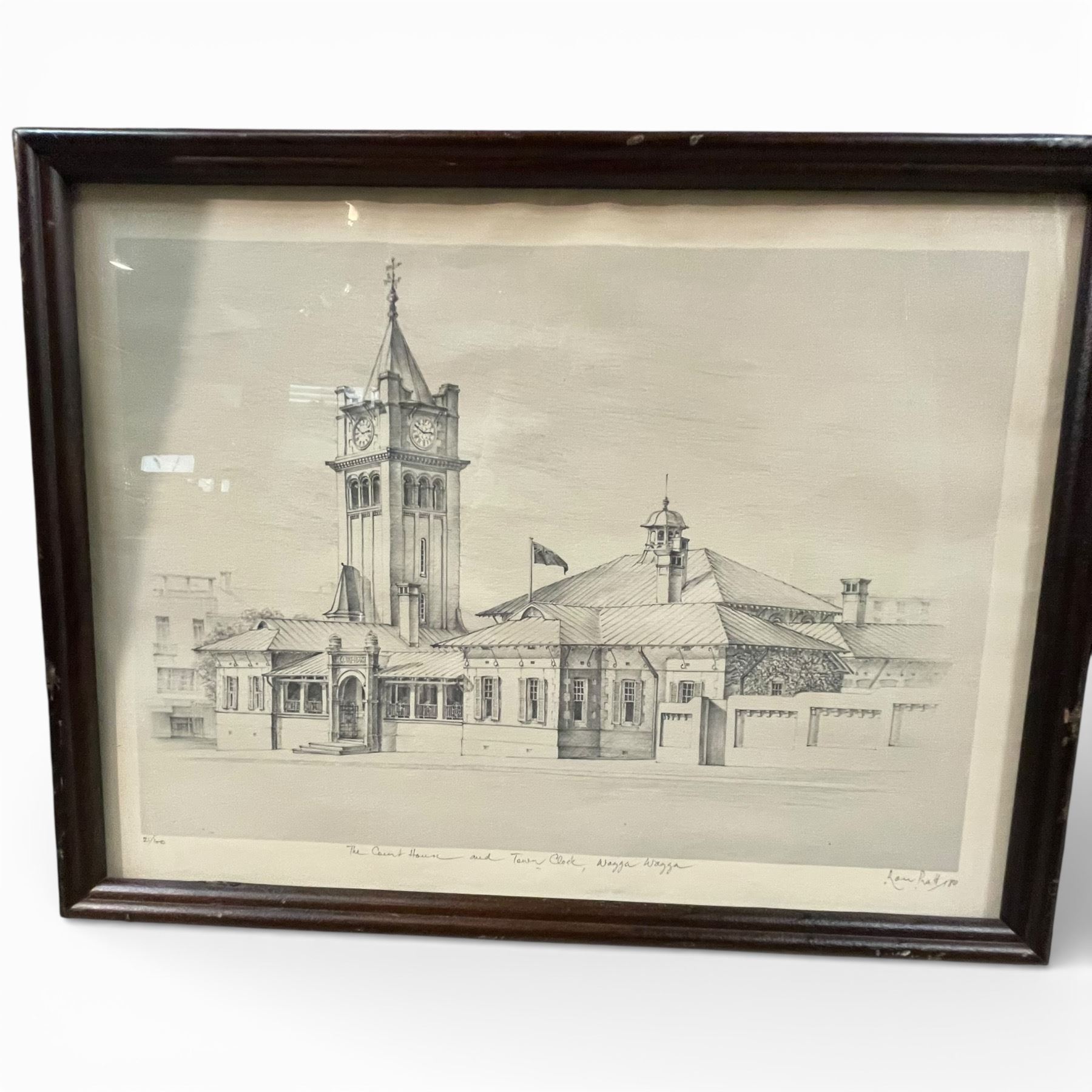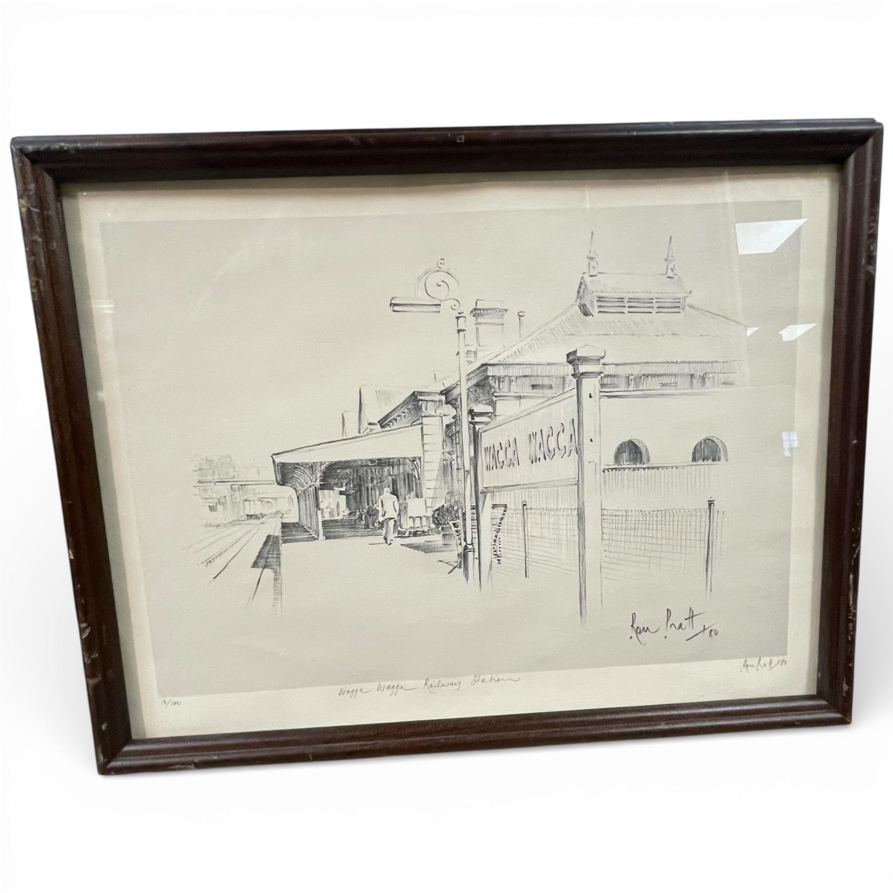 Two signed architectural renderings by Ron Pratt: 'The Court House & Town Clock Wagga Wagga' 21/100 and 'Wagga Wagga Railway Station' 13/100. Both pieces depict historic structures in Wagga Wagga, New South Wales, Australia. Dimensions: Width 17.75 In Height 13.75 In. Item is as pictured. pair of Architectural Renderings by Ron Pratt. 1. "The Court House and Town Clock, Wagga Wagga" 21/100. 2. "Wagga Wagga Railway Station" 13/100. Both Pieces are signed. Wagga Wagga is a city in New South Wales, Australia. Artist: Ron Pratt (Australian, b. 1930)