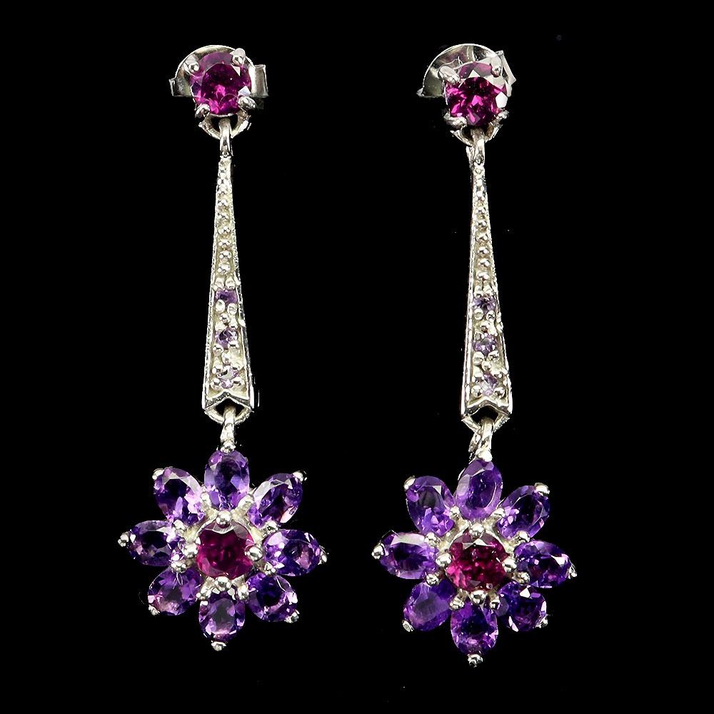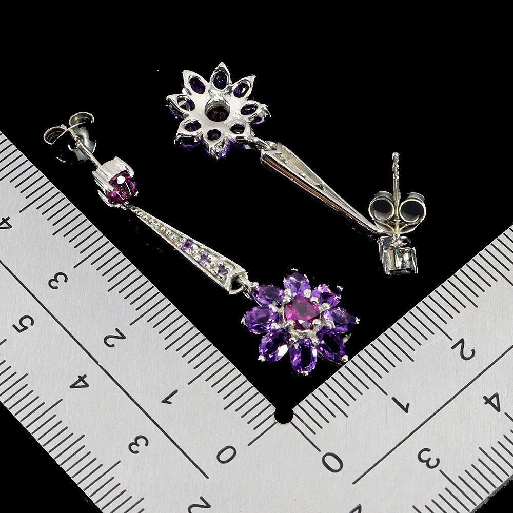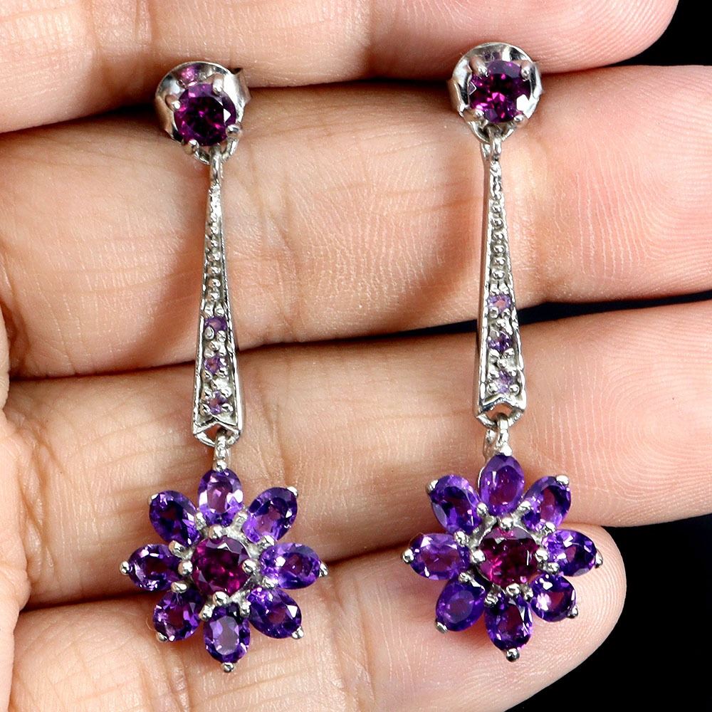AMETHYST AND RHODOLITE GARNET EARRINGS IN 14K WHITE PLATED GOLD OVER 925 STERLING SILVER - APPRAISED REPLACEMENT VALUE CAD 820
