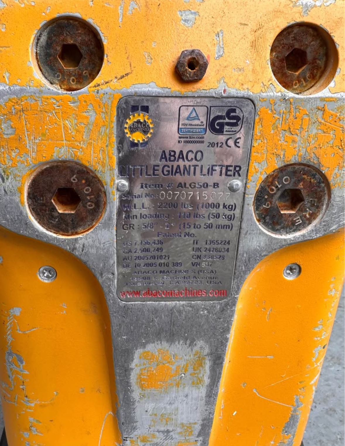 Abaco Little Giant Slab Lifter 2200 LB Capacity 15-50 mm (Retail: $1600)