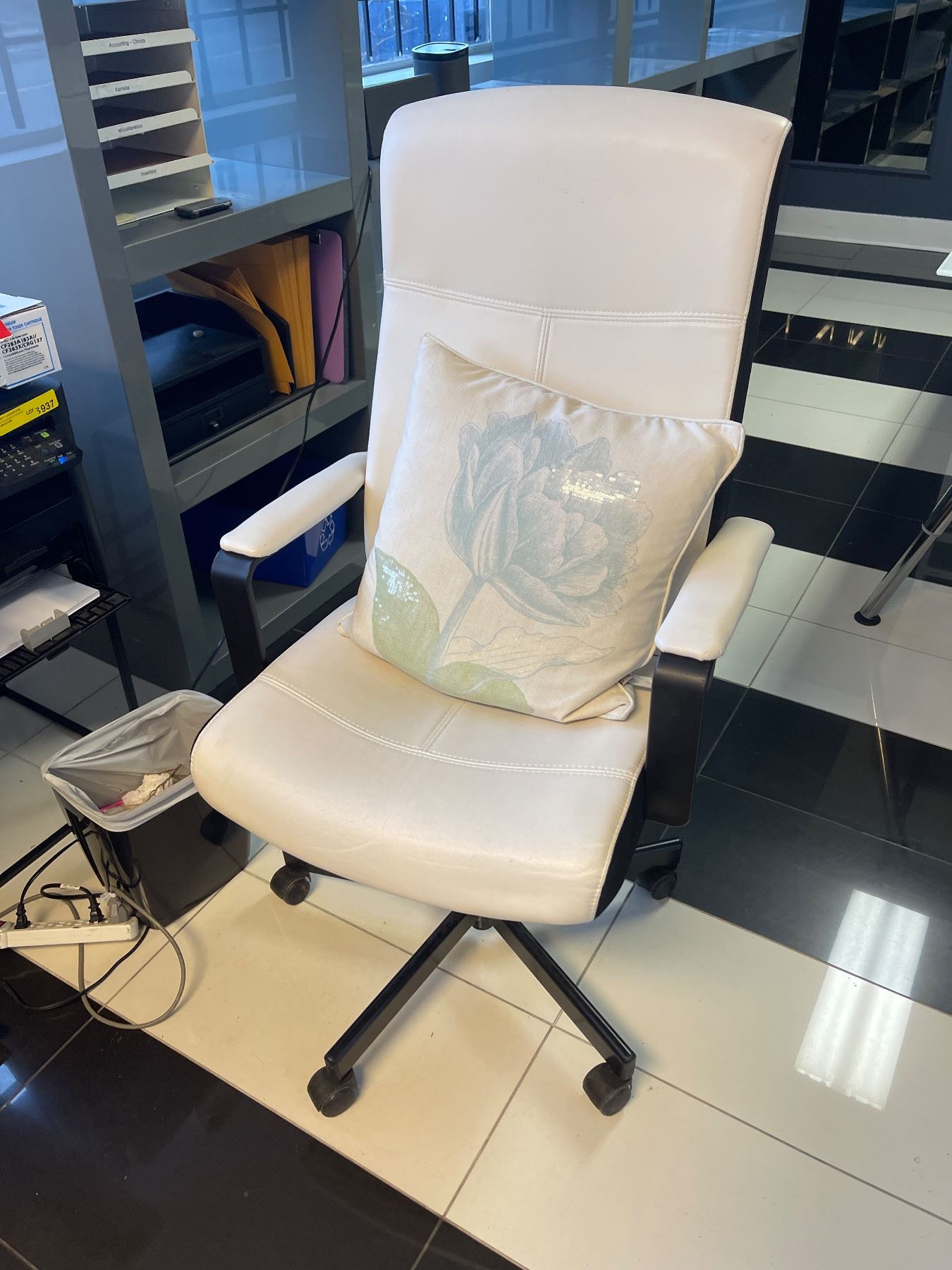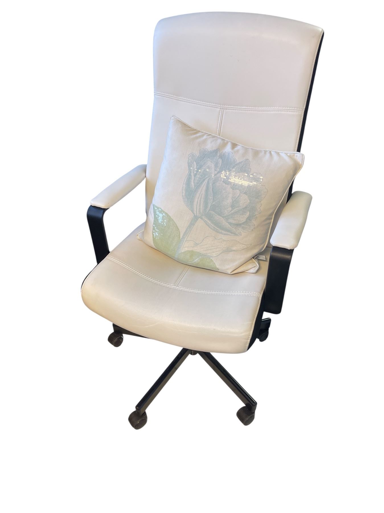 Adjustable Rolling White Leather High Back Office Chair
