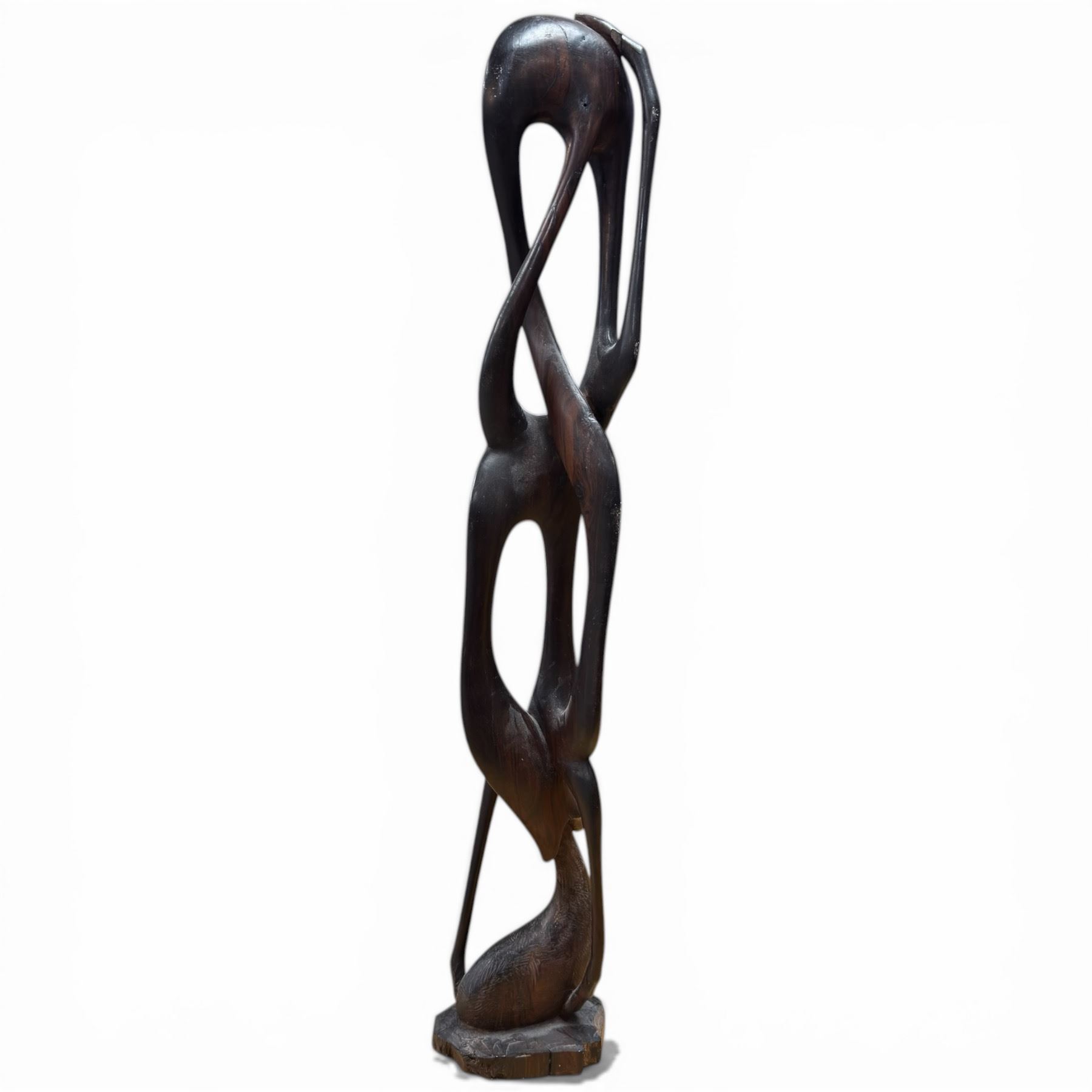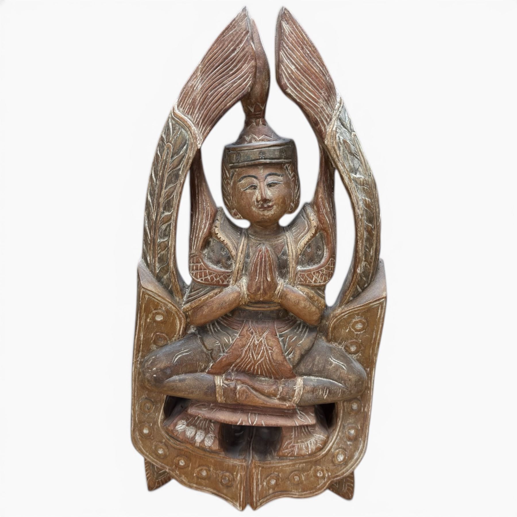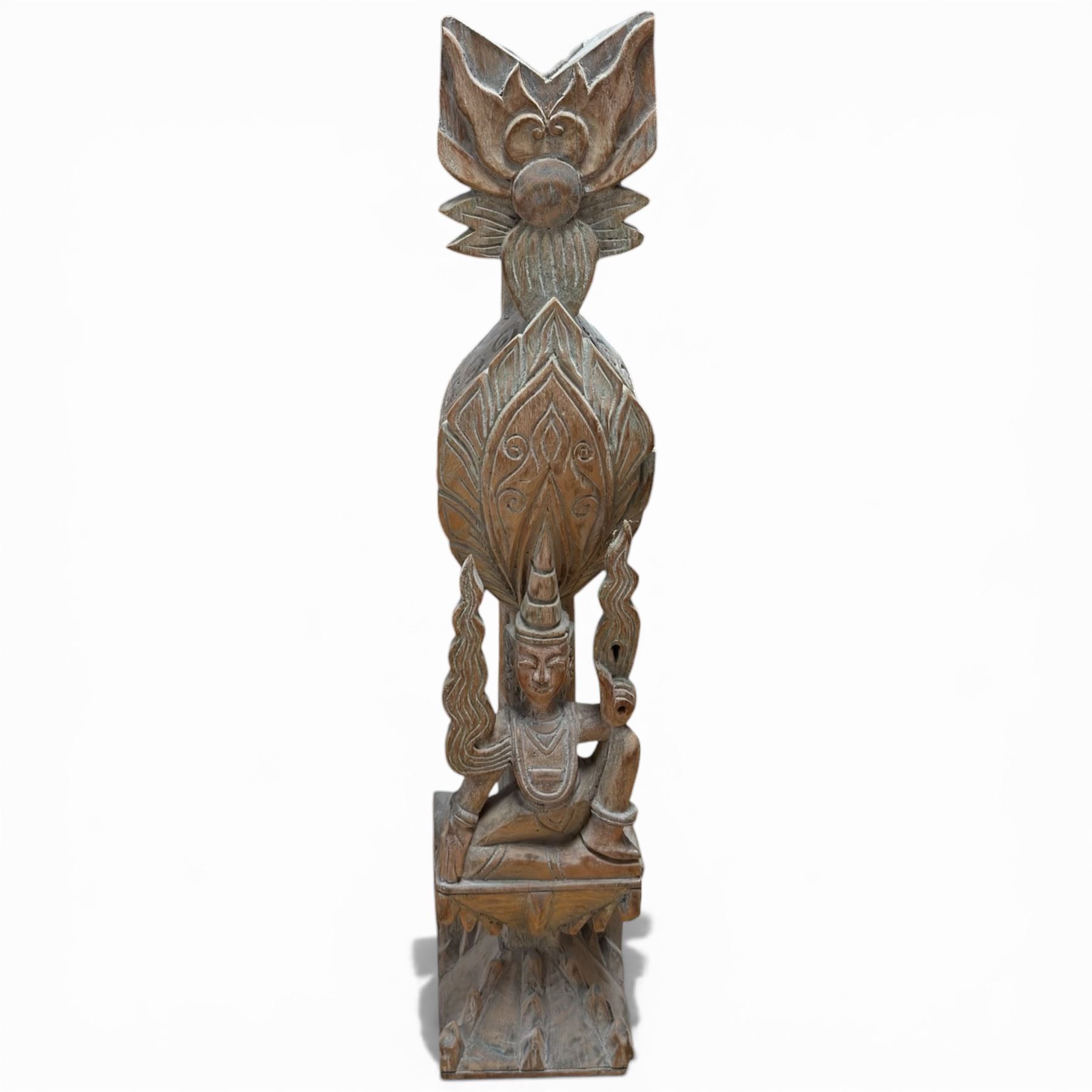 African Wood Makonde Shetani Sculpture 31.5" Tall, Teak Thai Theppanom & Hand Carved Buddhist Piece