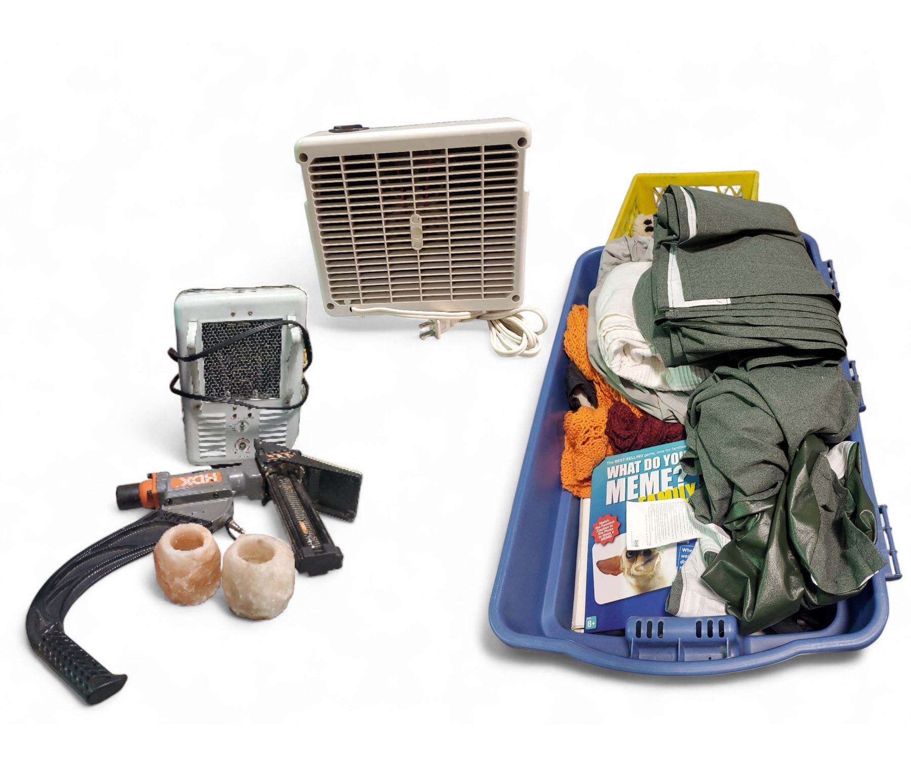 Air Heater, Compact Fan, Tools, Clothing, and Books
