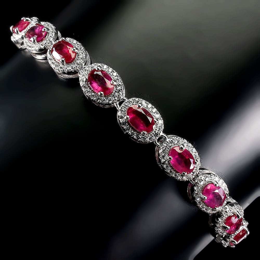 Amazing Ruby Bracelet in 925 Sterling Silver 14 K White Gold Plated - Appraised Replacement Value CAD 847