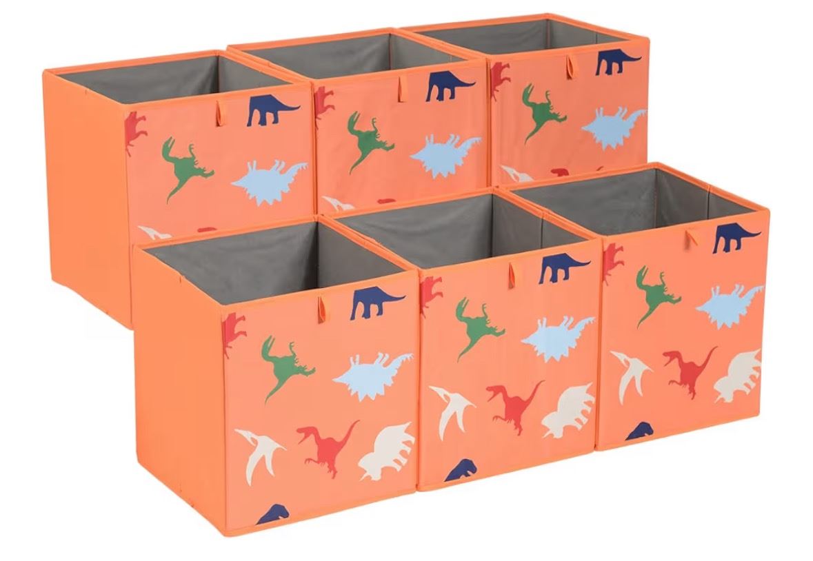 Amazon Basics Collapsible Fabric Storage Cube Organizer Bins - 6-Pack, Dino Squad, 13x15x13" - B09KHF86VS - Retail USD $28/pc. Total lot retail USD $2,520 for 90pcs. Product link: https://www.amazon.com.mx/Amazon-Basics-Collapsible-Storage-Organizer/dp/B09KHF86VS?th=1
