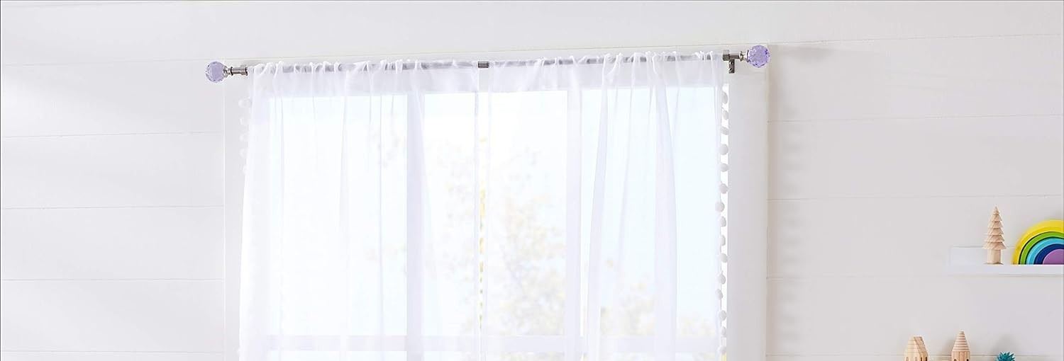 Amazon Basics Decorative 5/8" Curtain Rod with Faceted Ball Finials, 28" - 48", Purple - B07H95FVTJ - New, Retail Price USD $25/pc. Total Lot Retail Value USD $3,800 for 152pcs Product link: https://www.amazon.com/dp/B07H95FVTJ?tag=camelweb-20&linkCode=ogi&th=1&psc=1&language=en_US