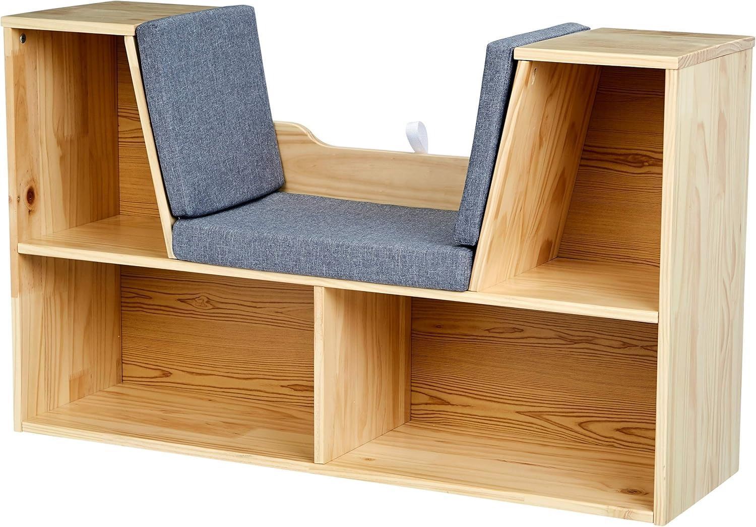 Amazon Basics Kids Bookcase with Reading Nook and 6 Storage Shelves, 1 Count, Pack of 1, Natural, 11