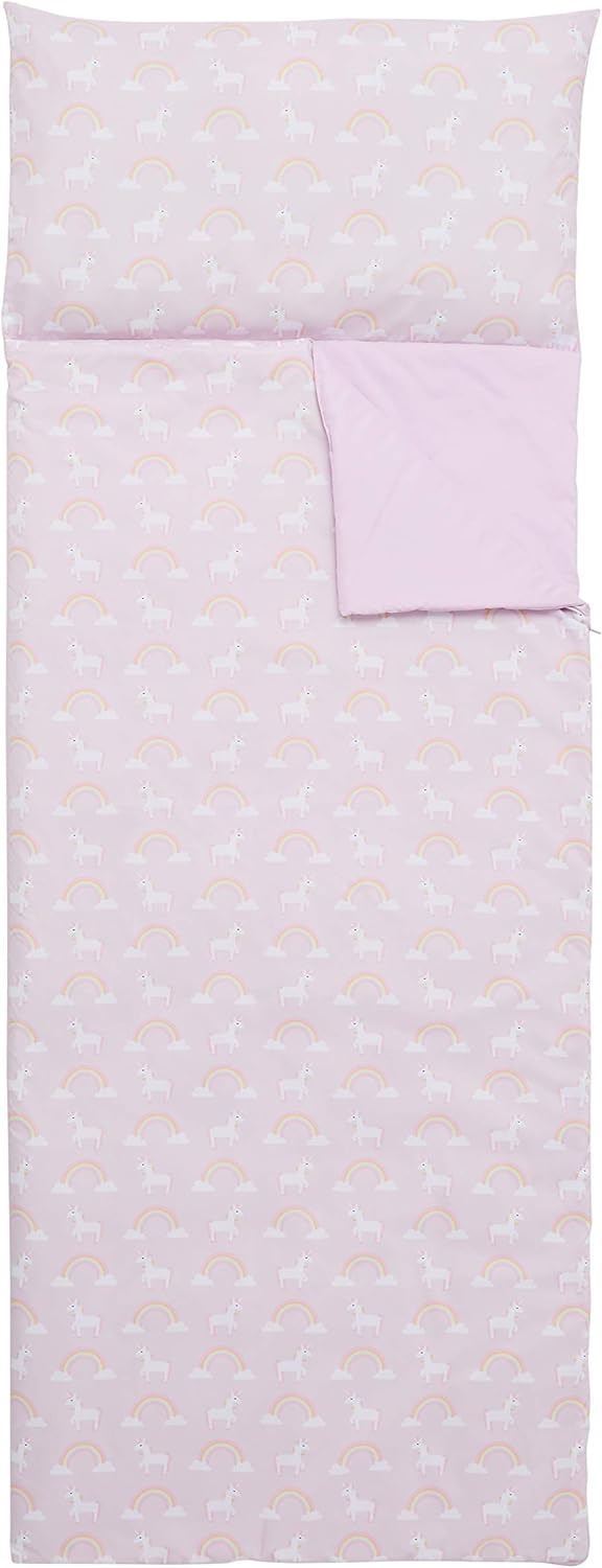 Amazon Basics Kids Ultra-Soft Light-Weight Indoor Slumber Sleeping Bag - Unicorns & Rainbows - B08F8G24SL - Retail USD $25/pc. Total lot retail USD $1,875 for 75pcs. Product link: https://www.amazon.com/dp/B08F8G24SL?tag=camelweb-20&linkCode=ogi&th=1&psc=1&language=en_US