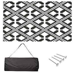 Amazon Basics Outdoor Mat - For RV, Camping, Patio - Carry Bag and Rug Stakes Included, Weather Resistant, Black and White, 9' x 12' - B0877B6S5L - Retail USD $60/pc. Total lot retail USD $2,340 for 39pcs. Product link:https://ca.camelcamelcamel.com/product/B0877B6S5L