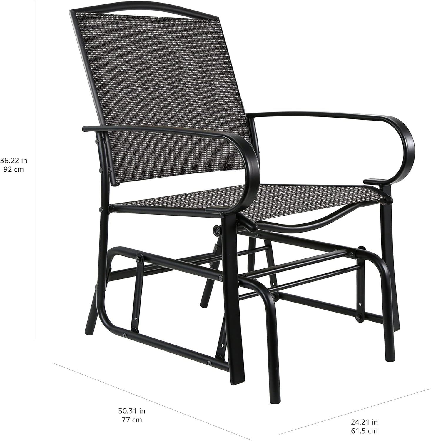Amazon Basics Outdoor Patio Textilene Glider Chair - Set of 2, Black, 30.3"D x 24.21"W x 36.2"H - B08XYGTZBP - New, Retail Price USD $160/pc - $360 for 2 Box. Product link: https://www.amazon.com/dp/B08XYGTZBP?tag=camelweb-20&linkCode=ogi&th=1&psc=1&language=en_US