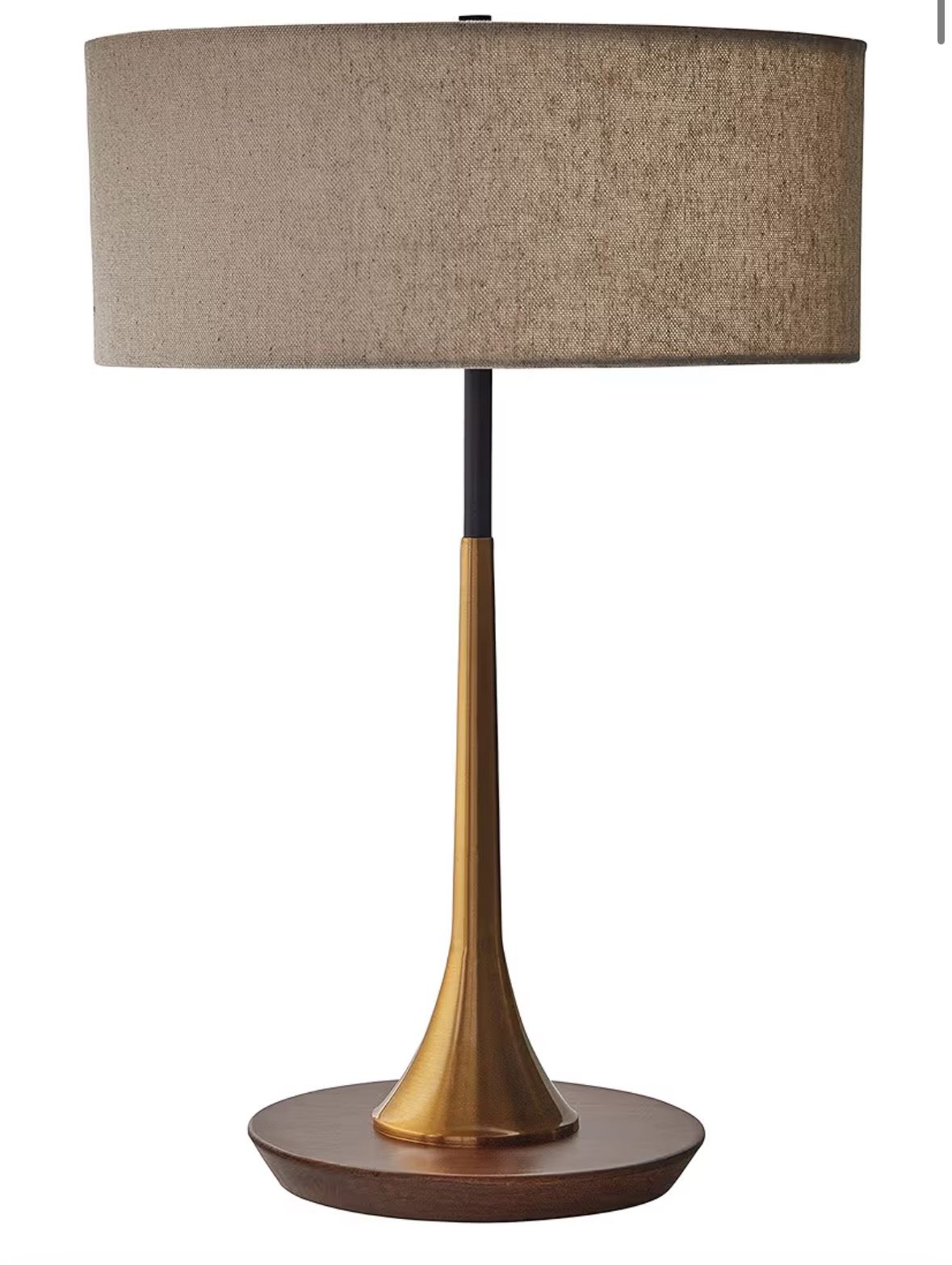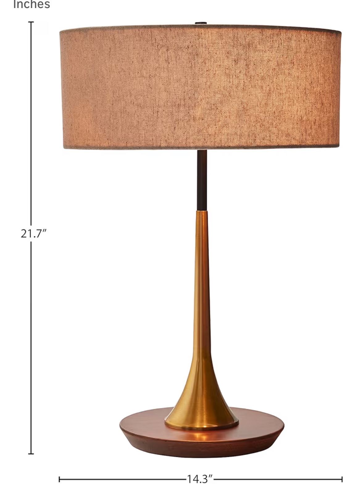 Amazon Brand - Rivet Mid-Century Modern Curved Table Desk Lamp With LED Light Bulb, Brass/Walnut, 14.3 x 21.7 Inches