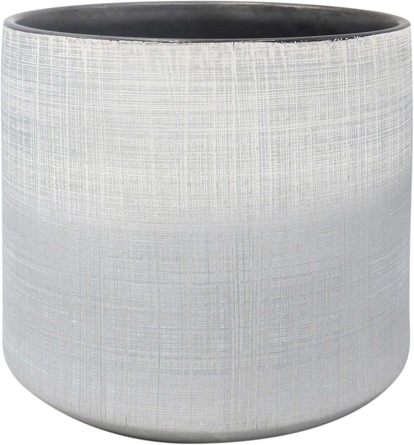 Amazon Brand - Rivet Rustic Stoneware Crosshatch Indoor Outdoor Flower Cylindrical Plant Pot, 7.9"H, Large Planter, Silver - B07QHJPNQB - Retail USD $30/pc. Total lot retail USD $2,400 for 80 pcs. Product link: https://www.amazon.com/dp/B07QHJPNQB?tag=camelweb-20&linkCode=ogi&th=1&psc=1&language=en_US