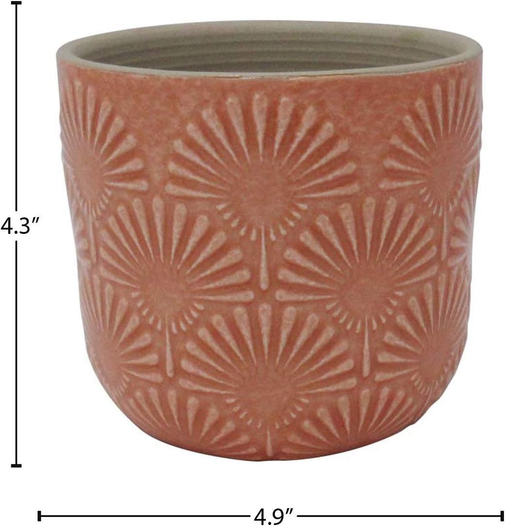 Amazon Brand �€“ Stone & Beam Cylindrical Small Fan-Embossed Planter, 4.3"H, Arabesque Coral Pink - B083YFP9DH - Retail USD $15/pc. Total lot retail USD $4,245 for 283 pcs. Product link: https://www.amazon.com/dp/B083YFP9DH?tag=camelweb-20&linkCode=ogi&th=1&psc=1&language=en_US