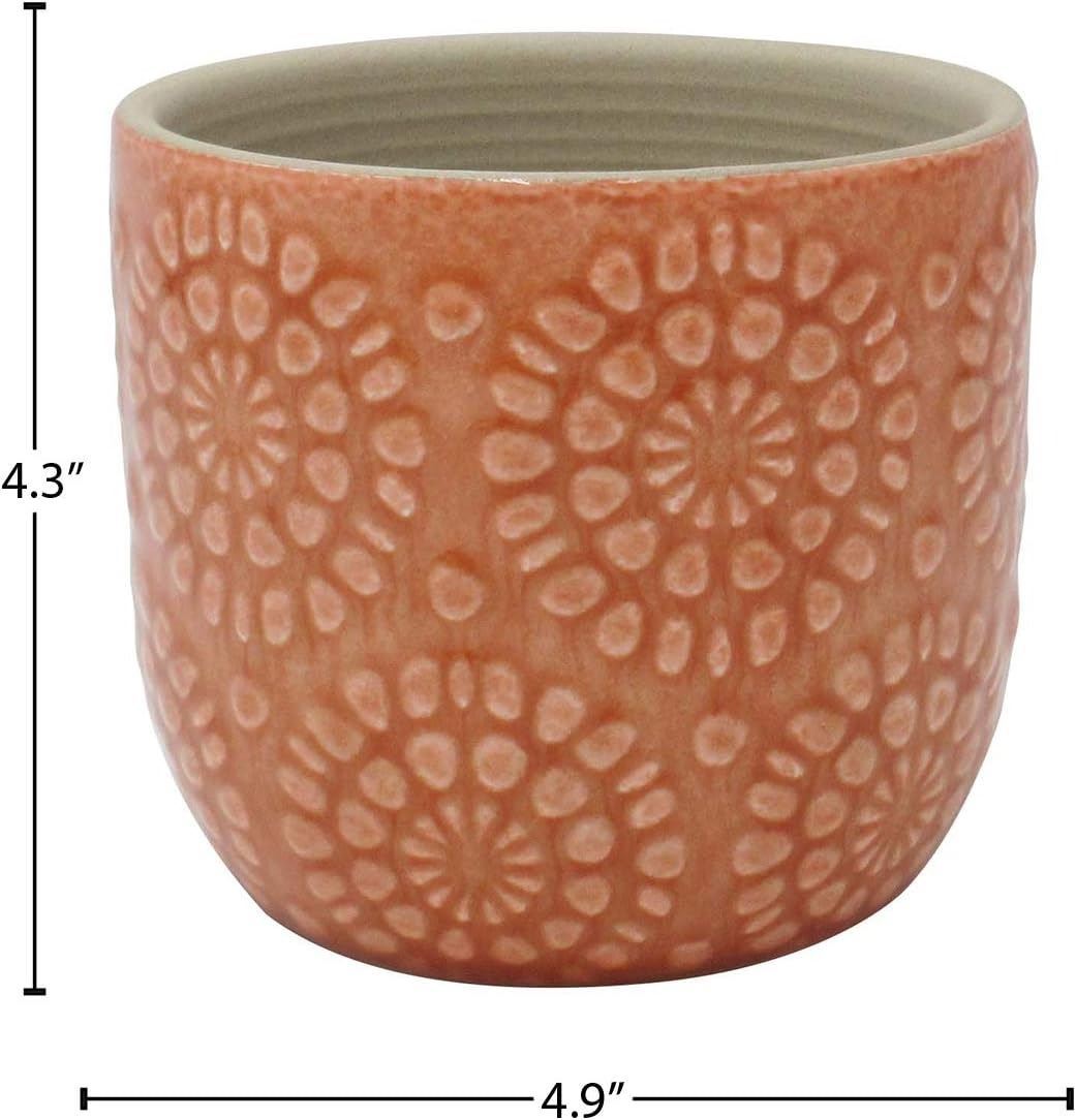 Amazon Brand �€“ Stone & Beam Cylindrical Small Floral-Embossed Planter, 4.3"H, Arabesque Coral Pink - B083YFP9C2 - Retail USD $15/pc. Total lot retail USD 2,100 for 140pcs Product link: https://www.amazon.com/dp/B083YFP9C2?tag=camelweb-20&linkCode=ogi&th=1&psc=1&language=en_US
