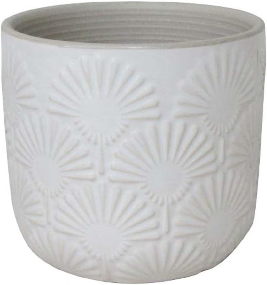 Amazon Brand �€“ Stone & Beam Small Fan-Embossed Planter, 4.3" H, Cloud Dancer White - B083YFR99M - Retail USD $13/pc. Total lot retail USD $4,680 for 360 pcs. Product link: https://www.amazon.com/dp/B083YFR99M?tag=camelweb-20&linkCode=ogi&th=1&psc=1&language=en_US