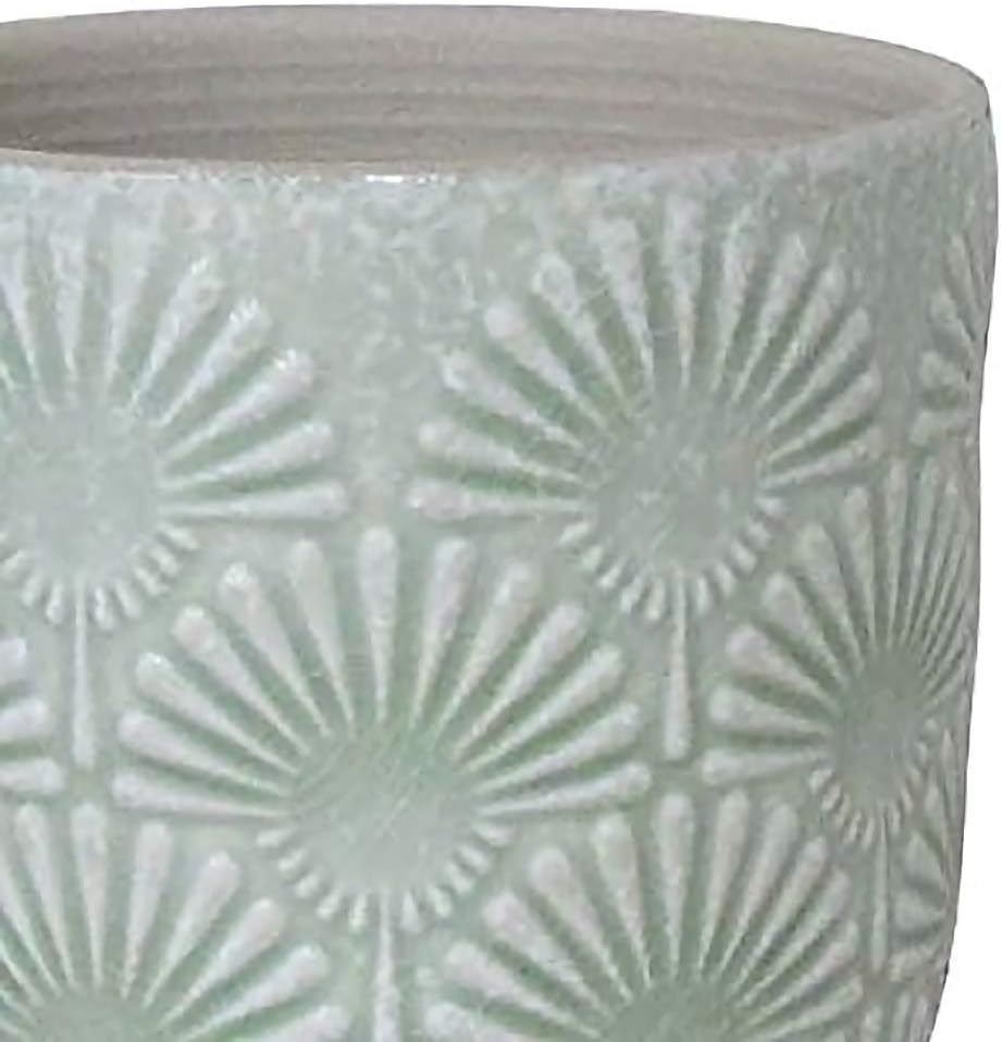 Amazon Brand �€“ Stone & Beam Small Fan-Embossed Planter, 4.3" H, Seafoam Green - B083YFSKFW - Retail USD $15/pc. Total lot retail USD $4,215 for 281 pcs. Product link: https://www.amazon.com/dp/B083YFSKFW?tag=camelweb-20&linkCode=ogi&th=1&psc=1&language=en_US
