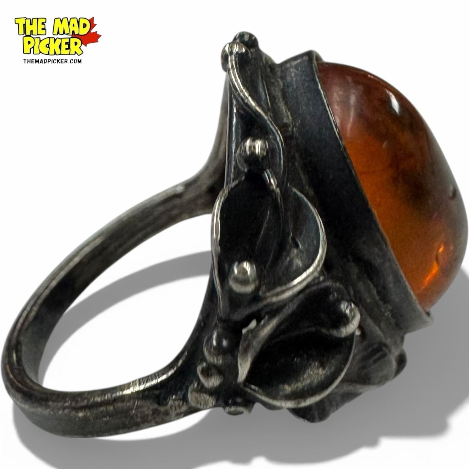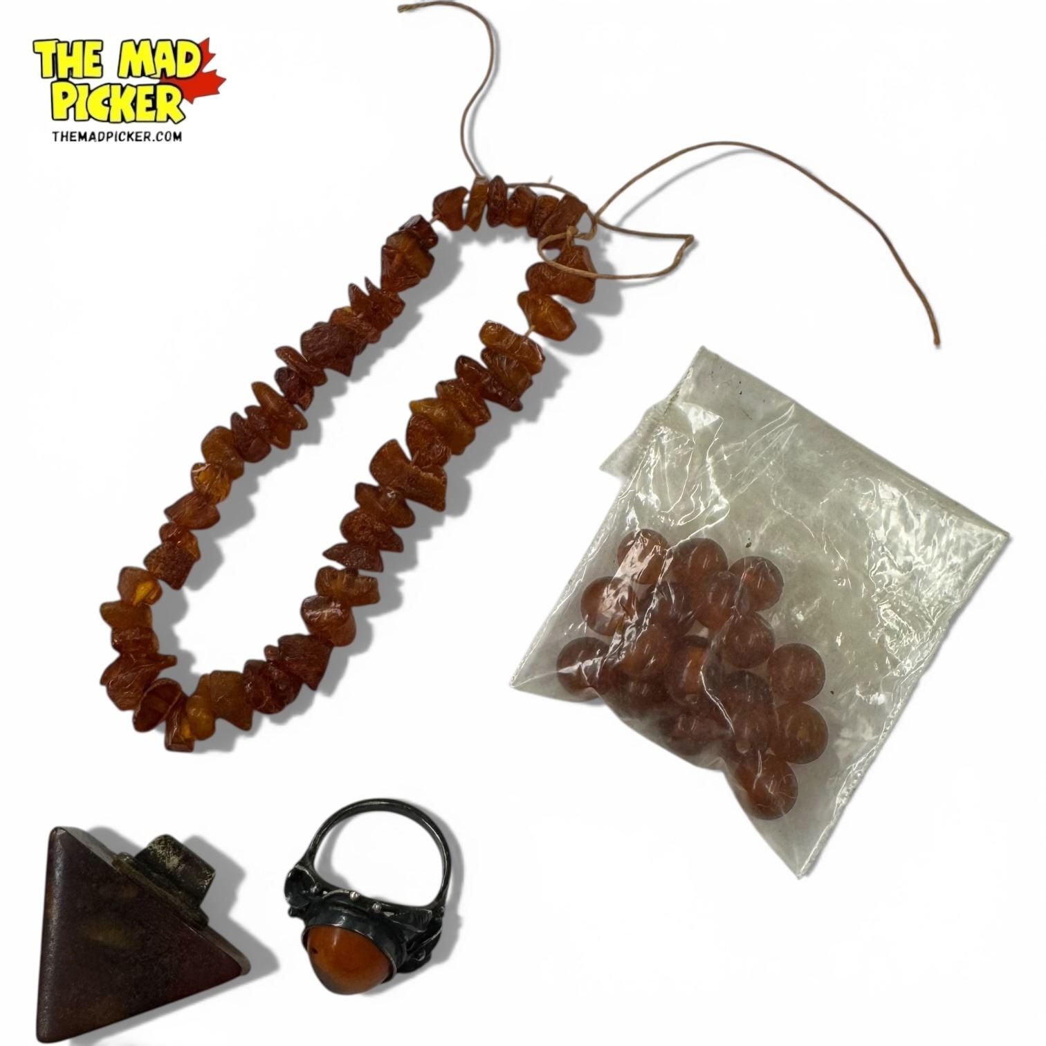 Amber Ring. 8" Chip Strand, Pendant and 18 Drilled Beads - Chips are 7mm - 11mm thick, beads are 8mm and ring is size 7