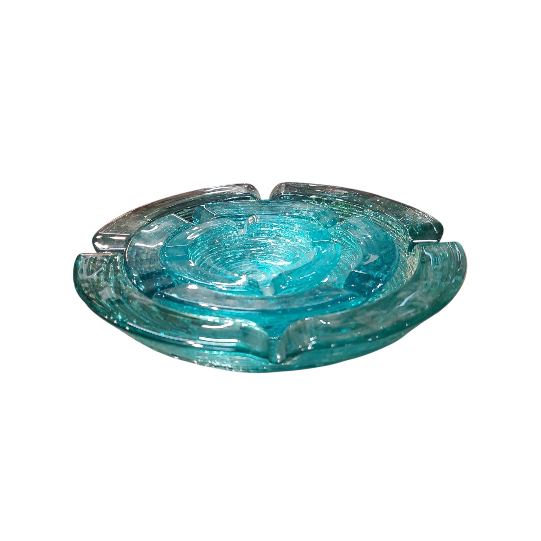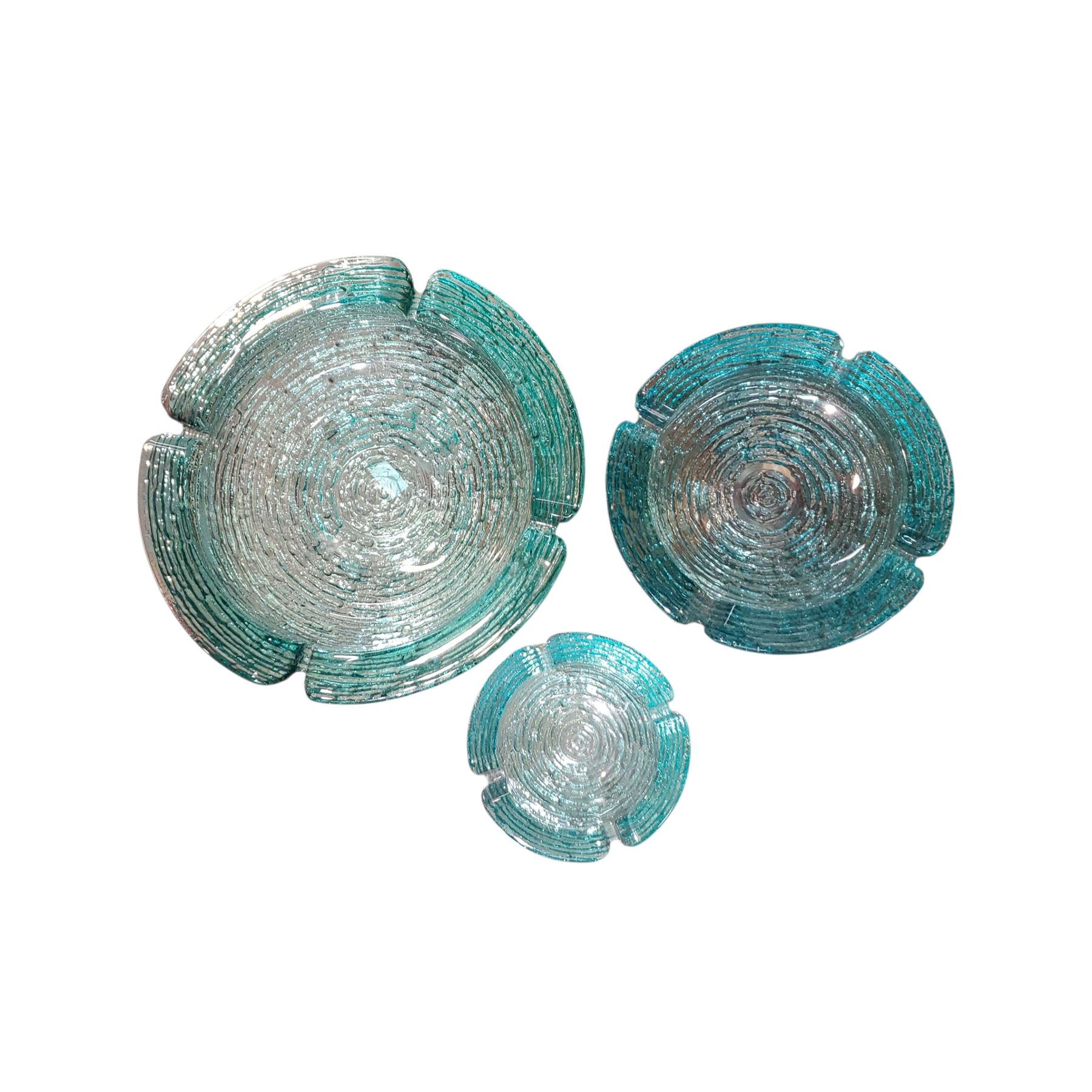 Anchor Hocking Soreno Aqua Glass Ashtray Set Mid-Century 1960s-70s
