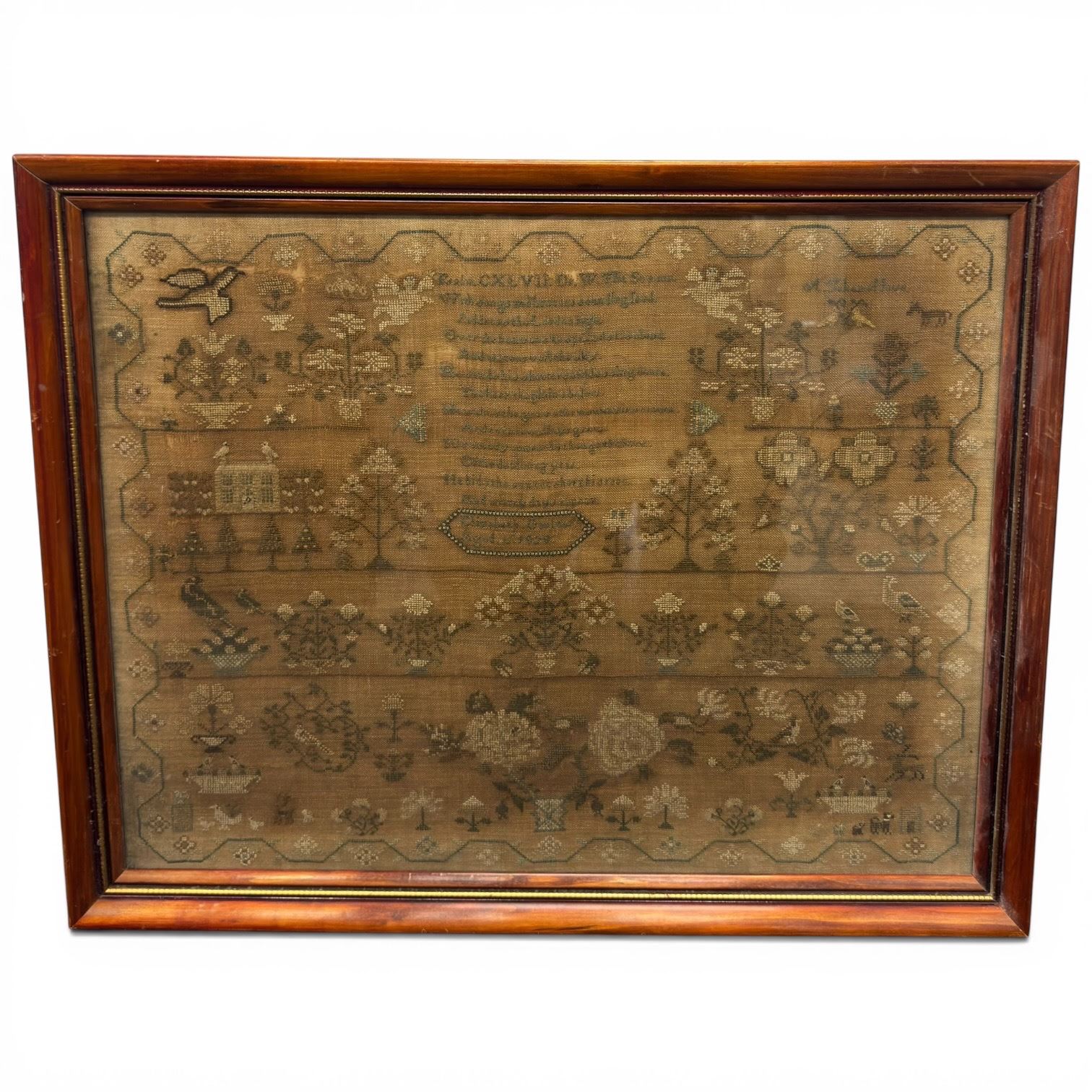 Antique 1928 Embroidered Sampler (20" x 24" framed)