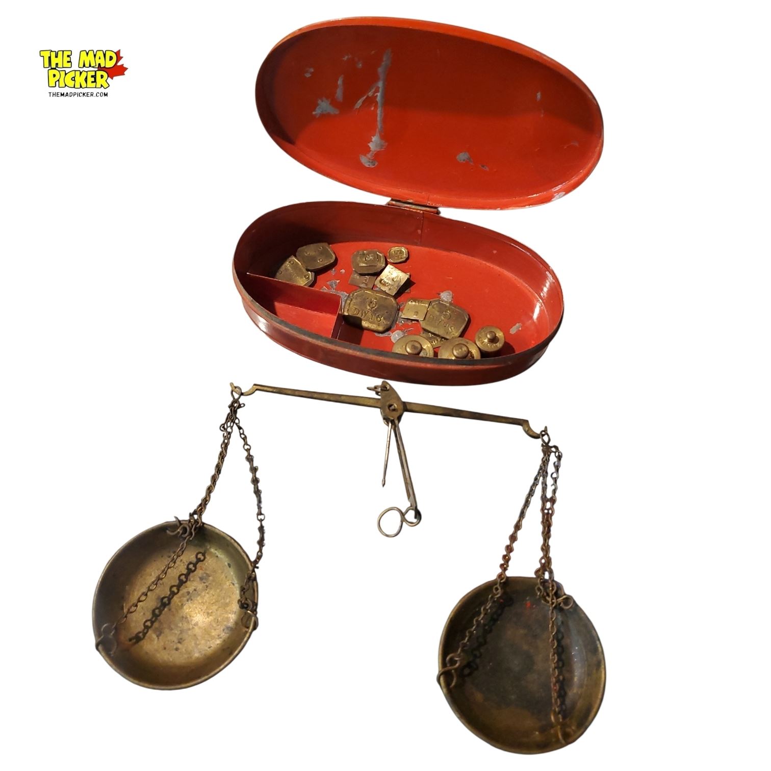 Antique 19th Century California Gold Rush Brass Pocket Scale with Toleware Box