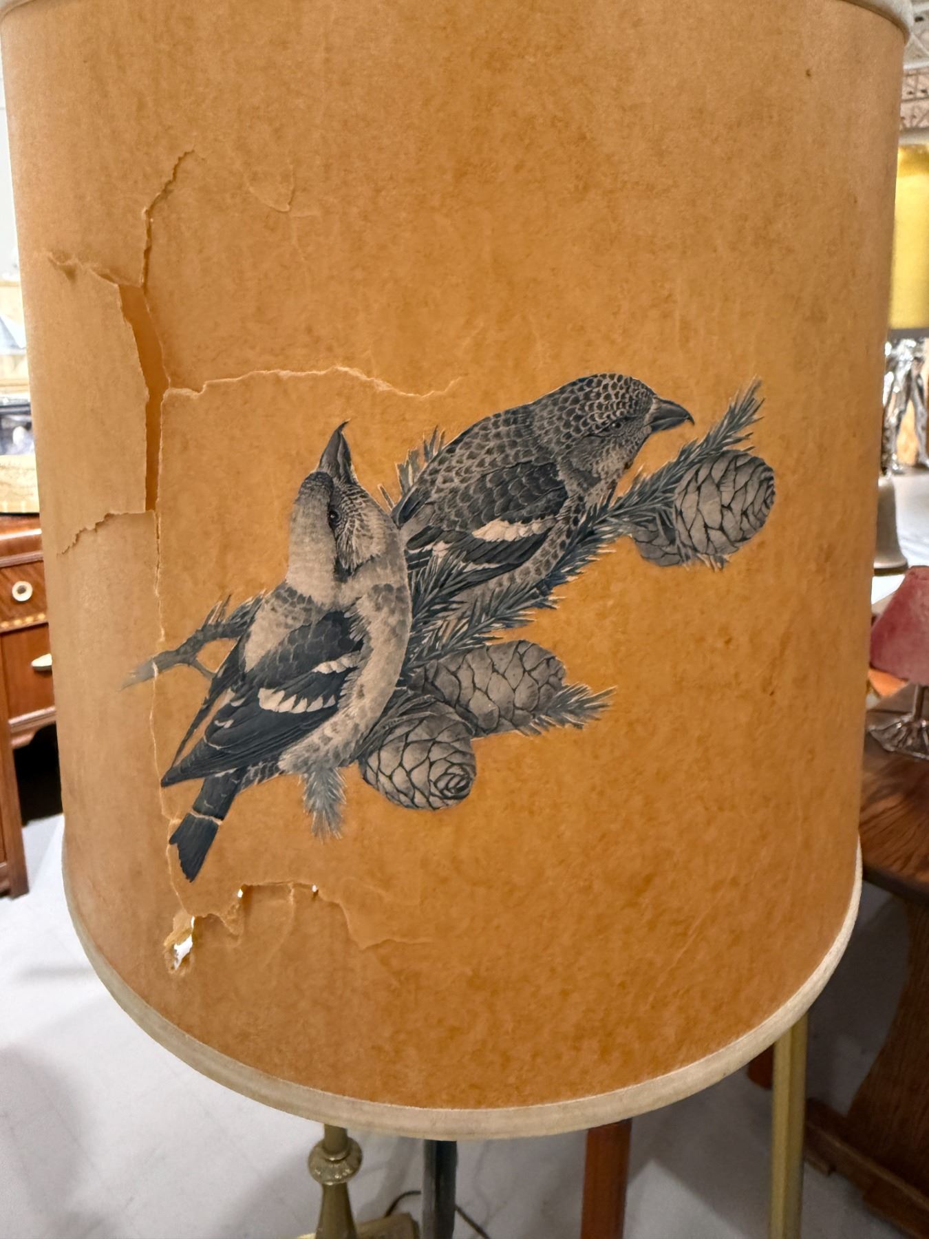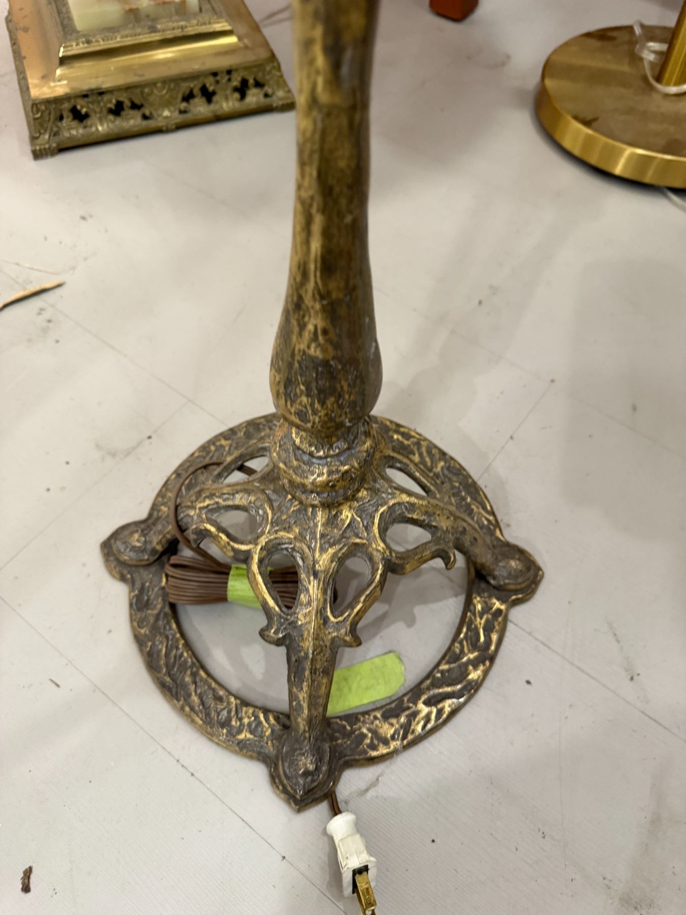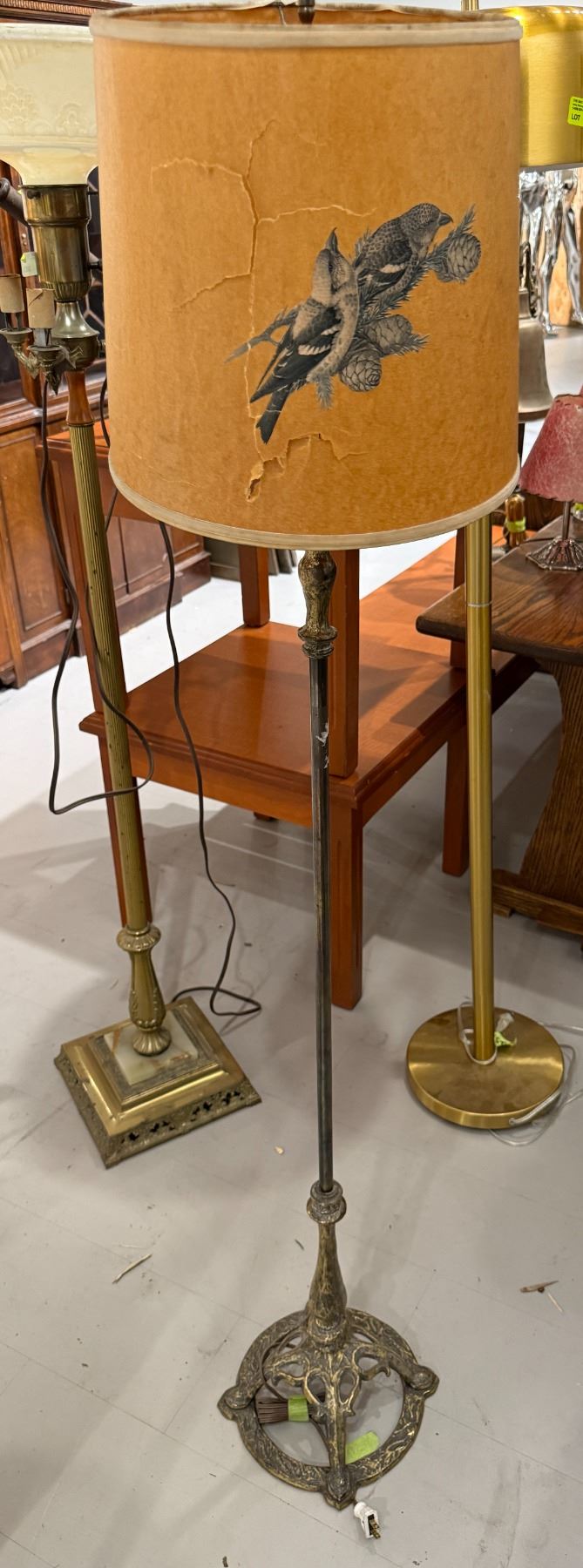 Antique Brass Floor Lamp with Shade (Shade has damage)
