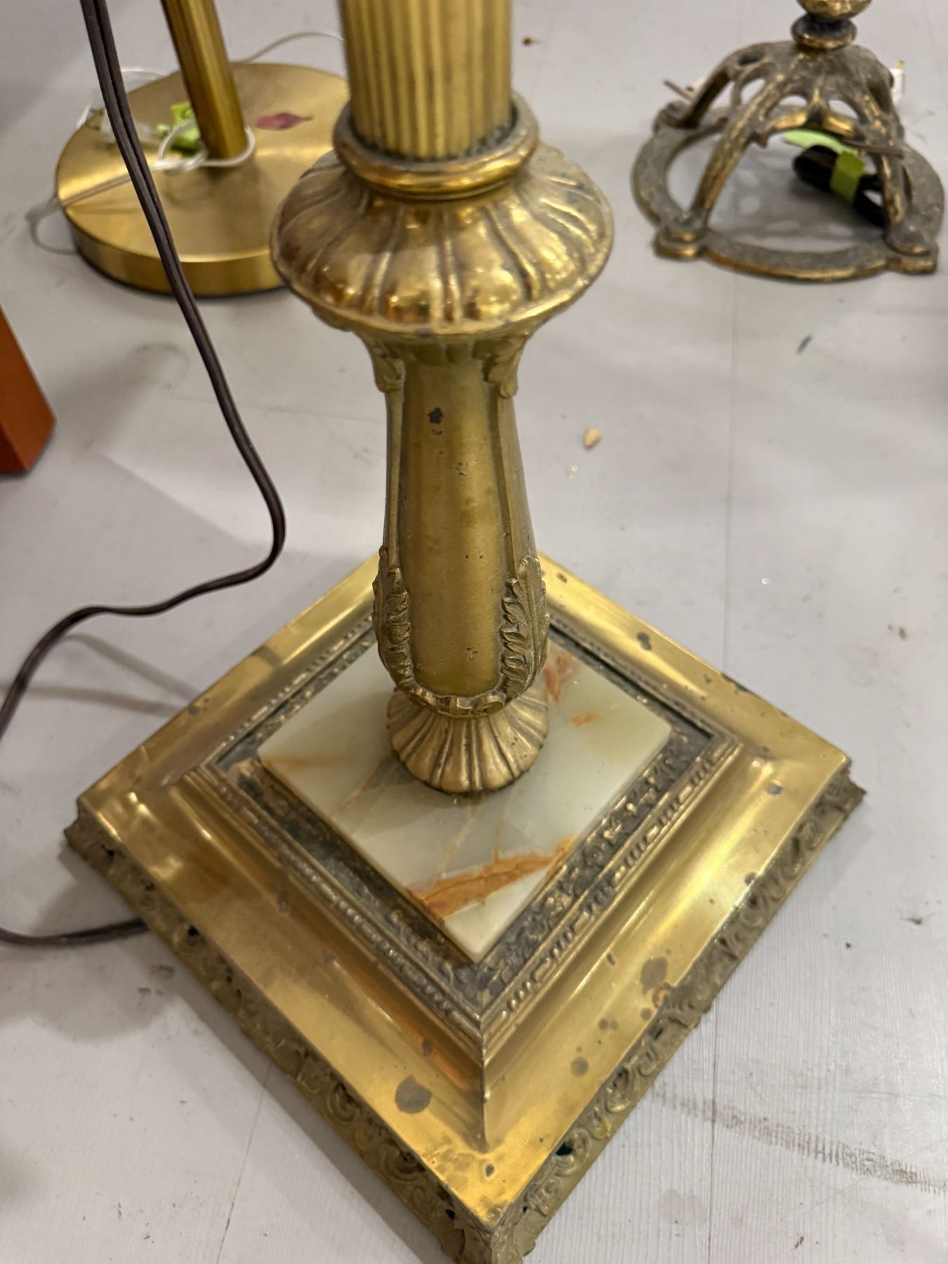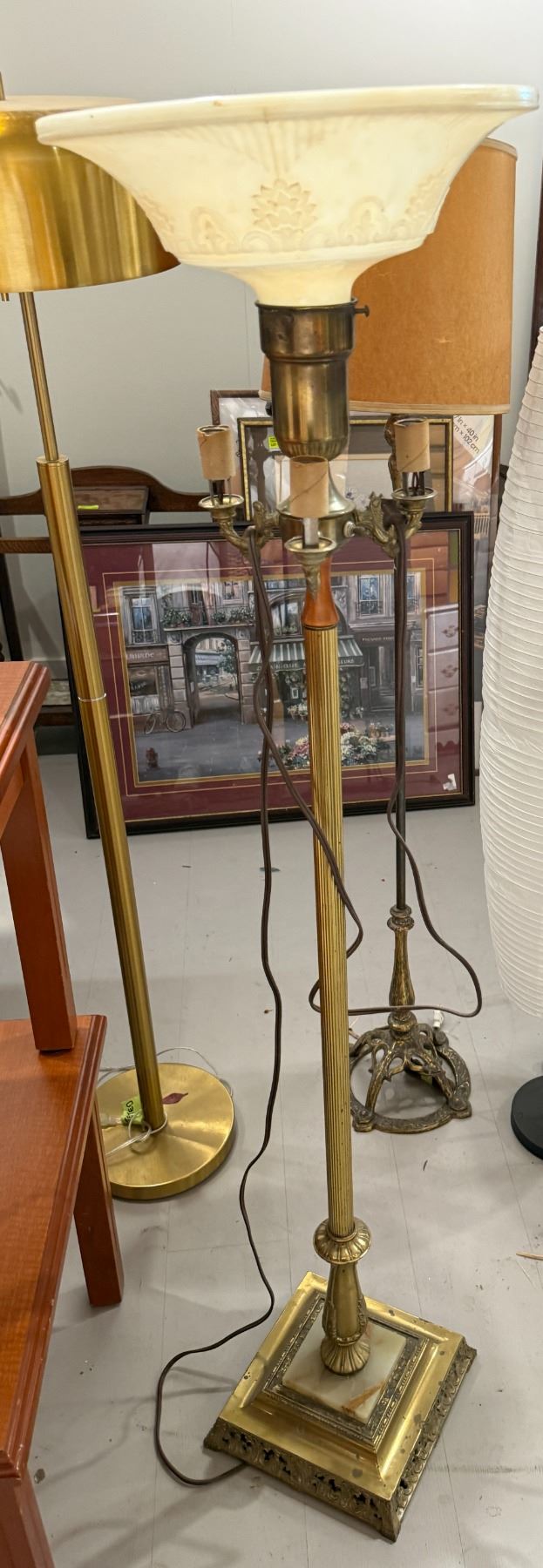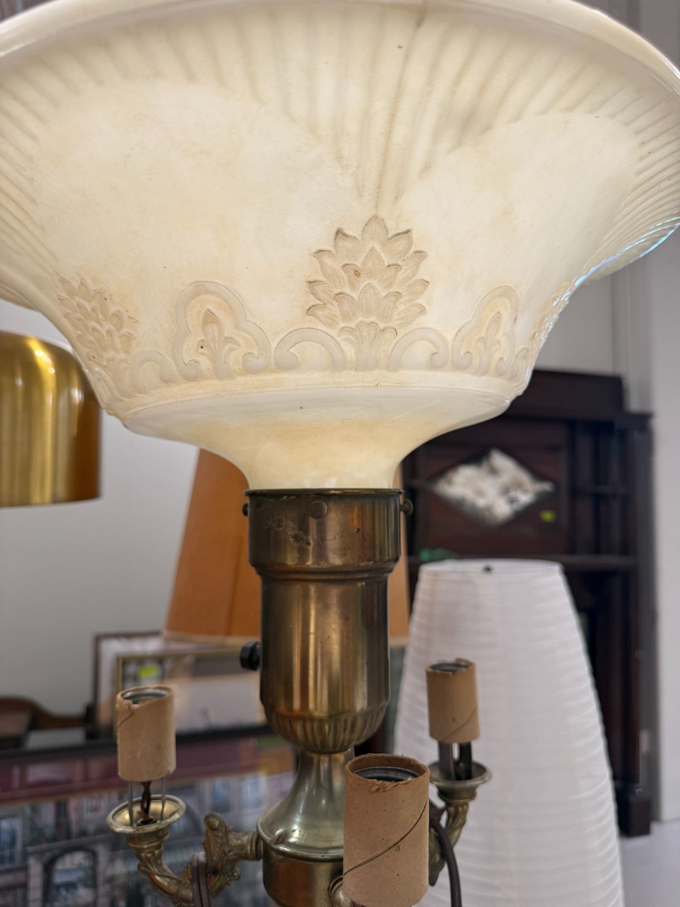 Antique Brass & Marble Torchier Floor Lamp with Glass Shade (shade may be a mismatch)