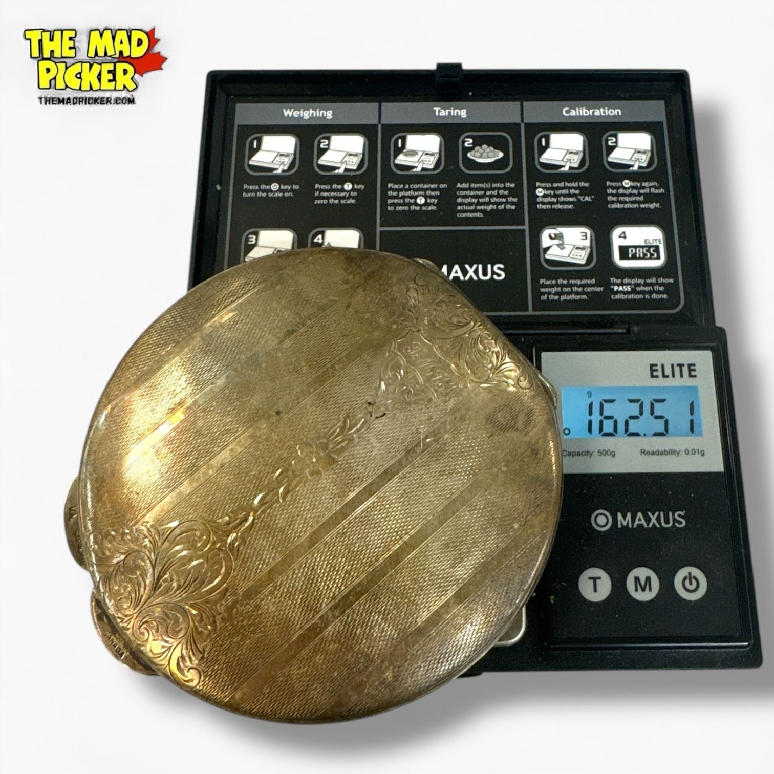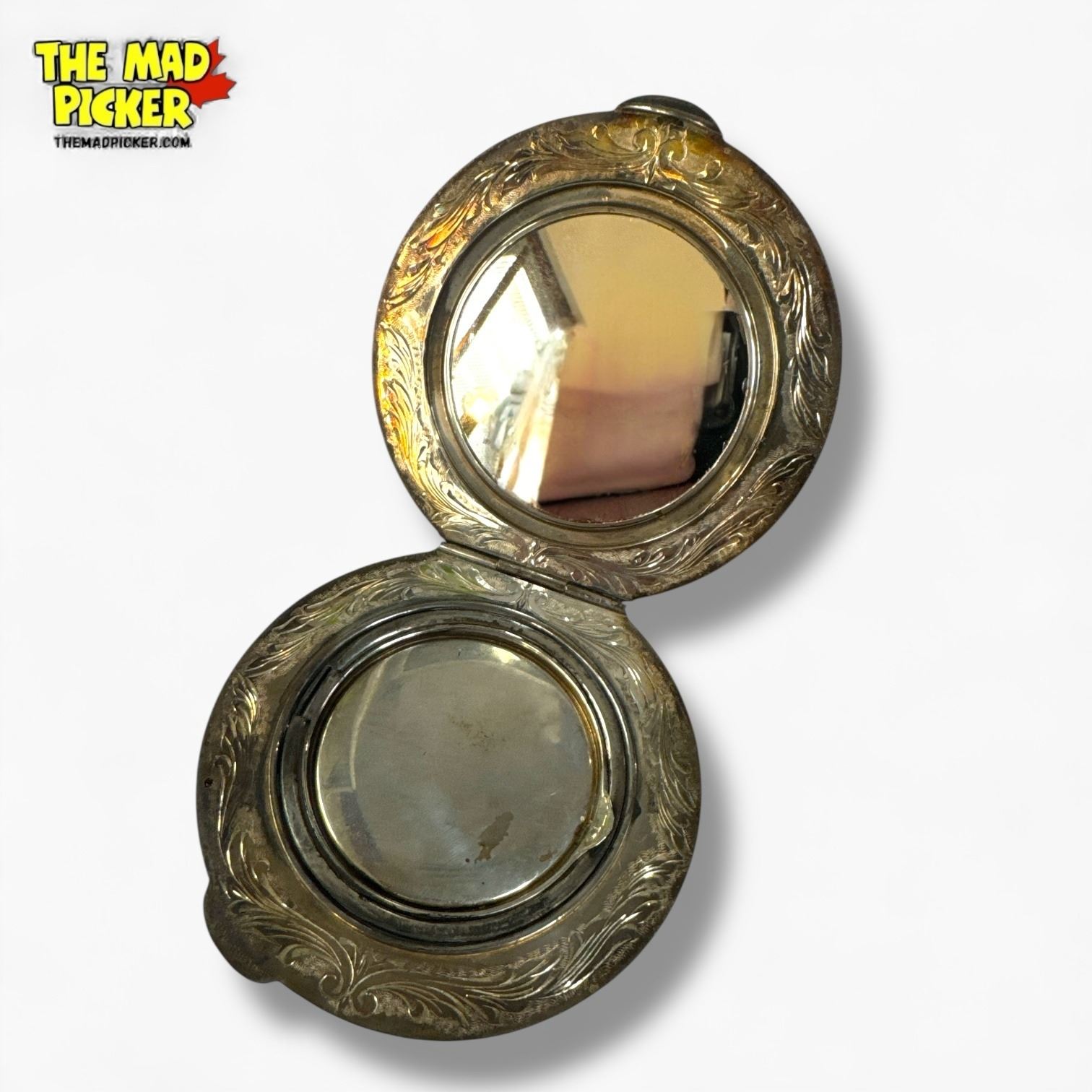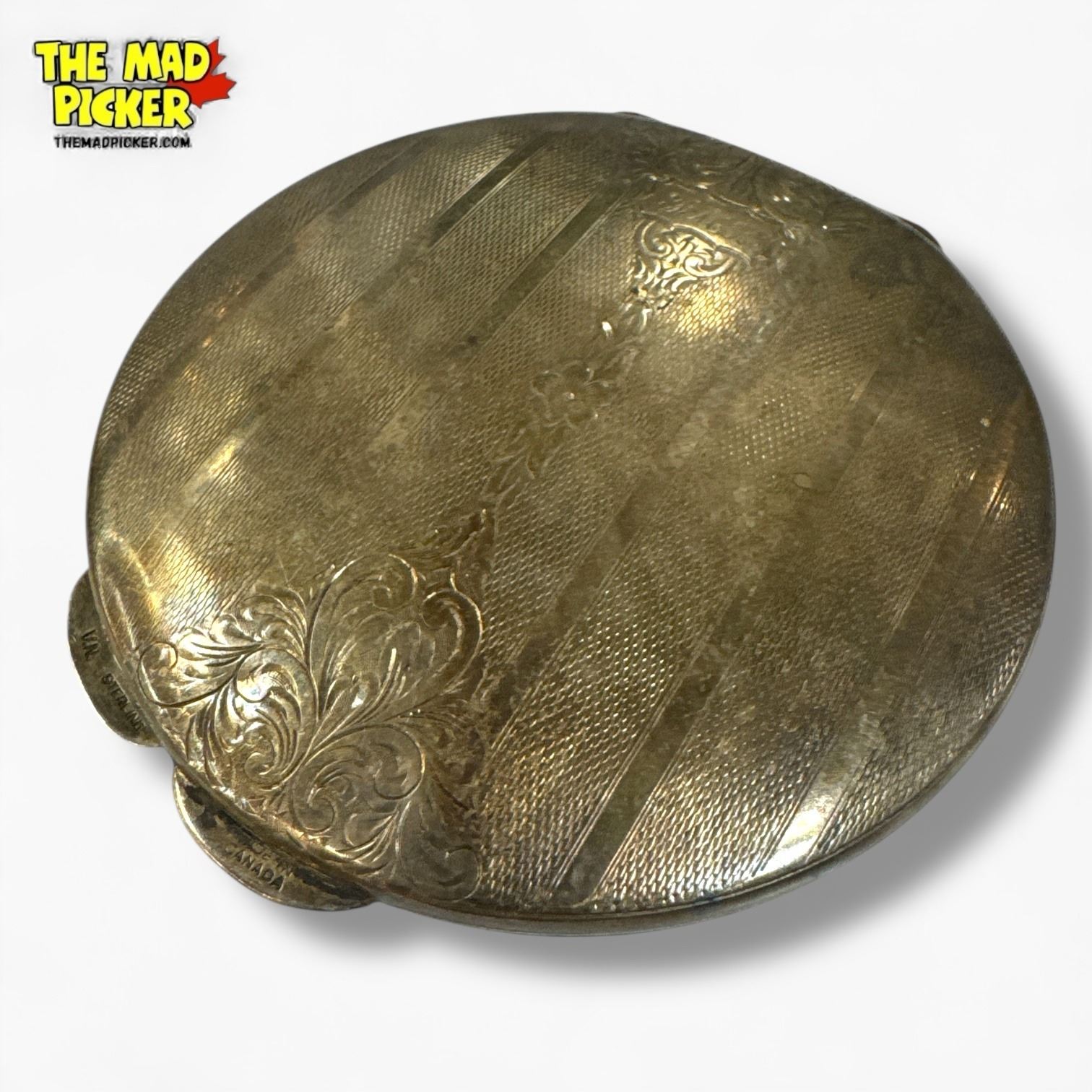 Antique Canadian Sterling Silver Hand Chased Compact - Engraved Initials - Total weight: 162.51 grams