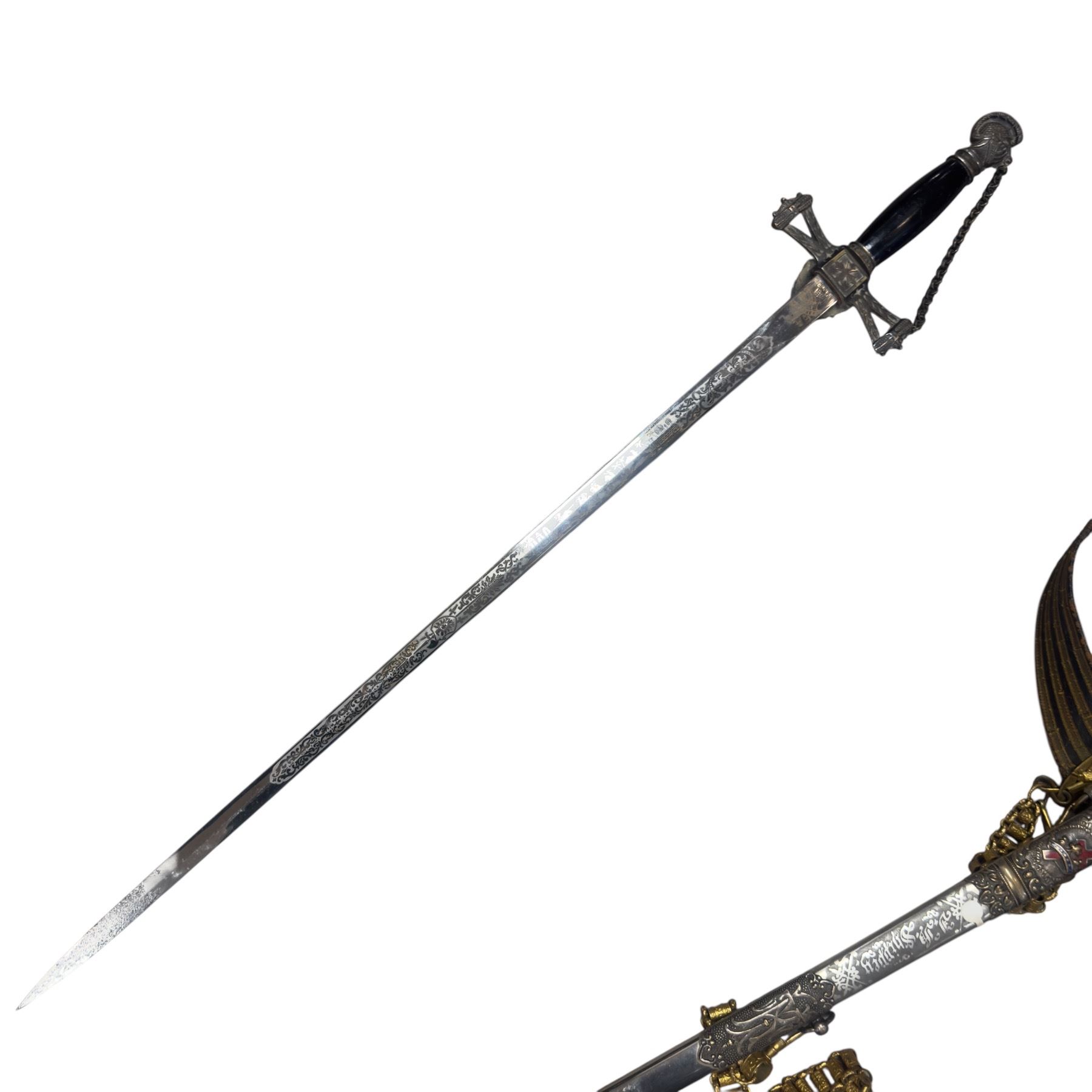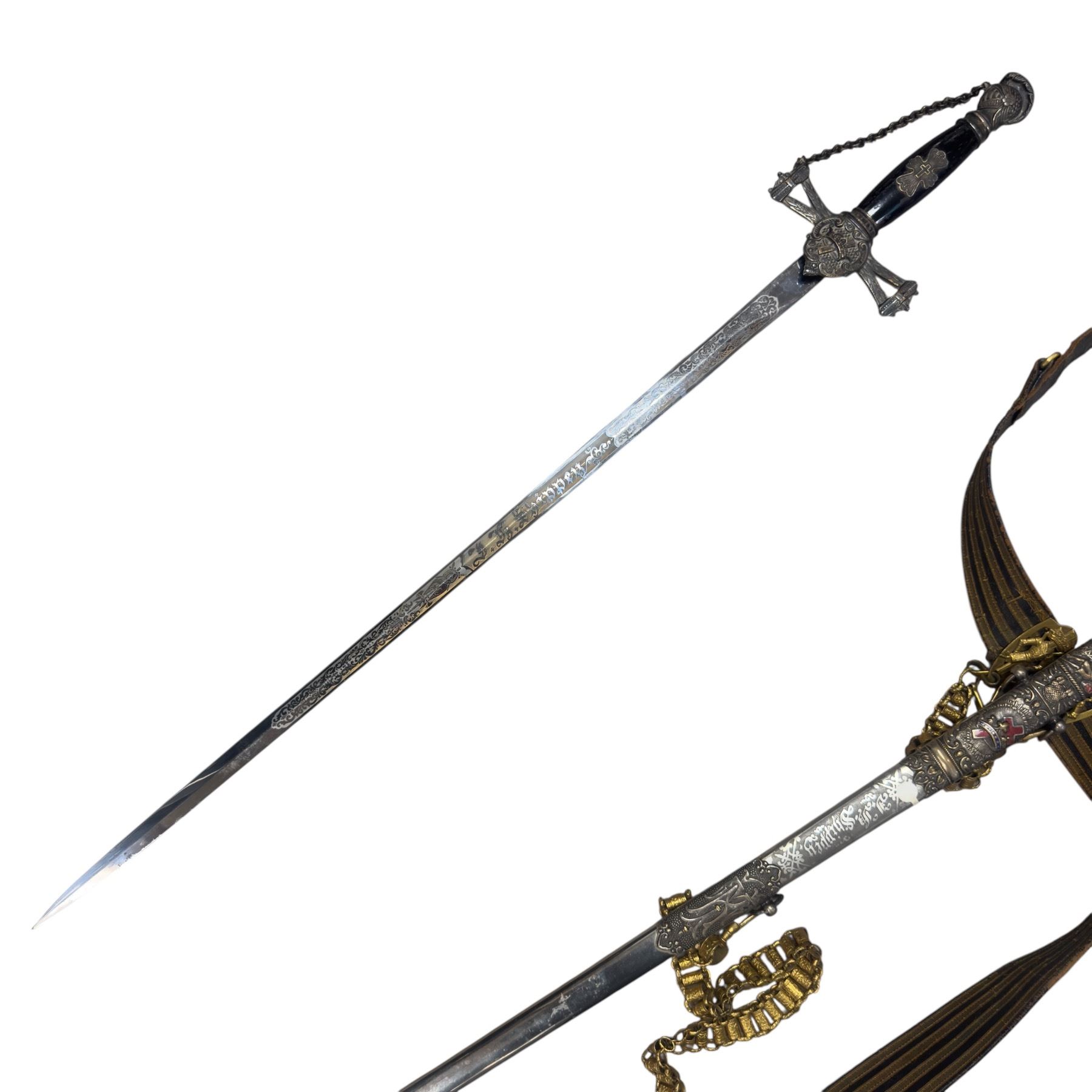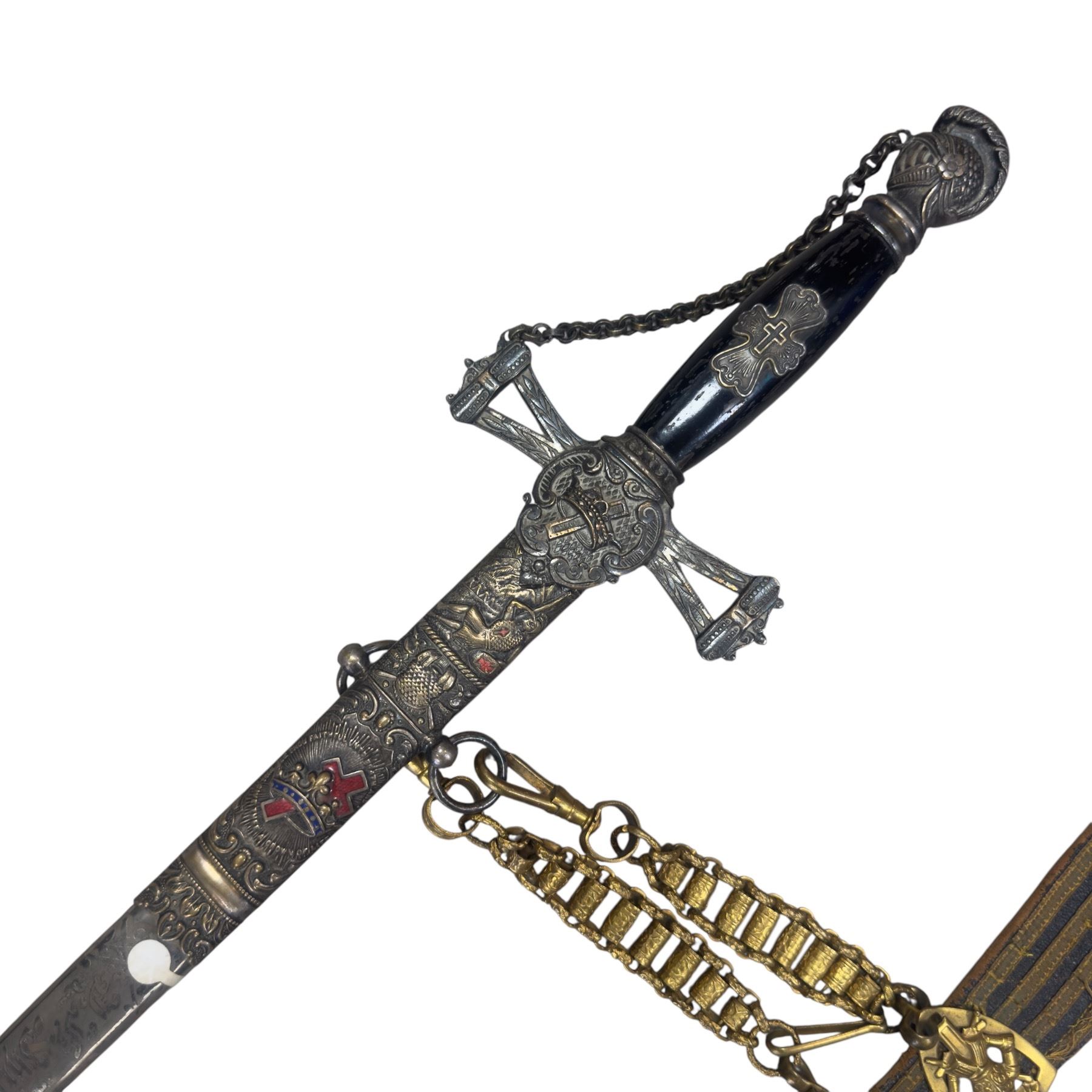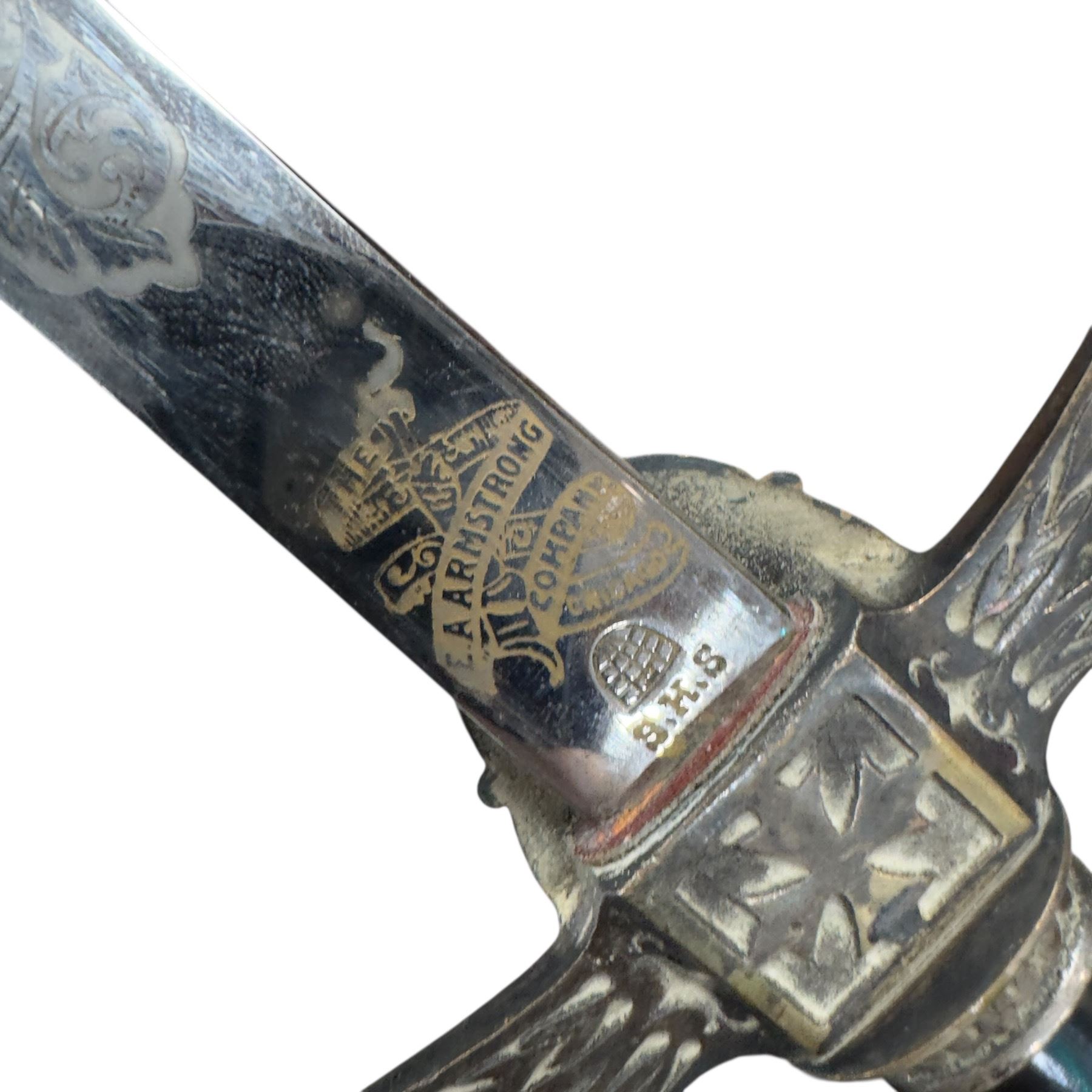 Antique Masonic Knights Templar ceremonial sword crafted by E.A. Armstrong of Chicago during 1868-1892. Features intricate designs and emblematic motifs associated with Knights Templar Freemasonry. Historically significant piece from the company's active manufacturing period. Item is as pictured.