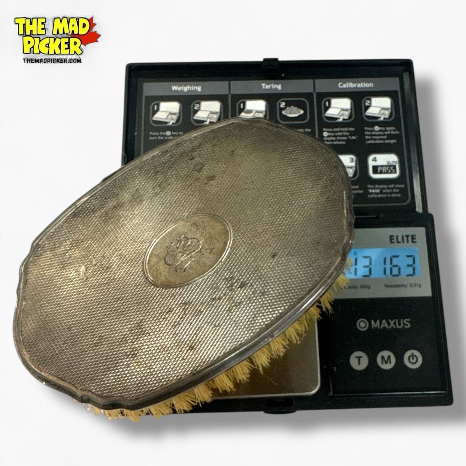 Antique English Sterling Backed Horse Hair Clothes Brush - Total weight: 132 grams