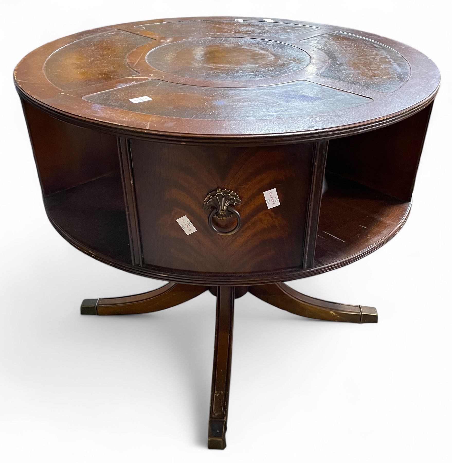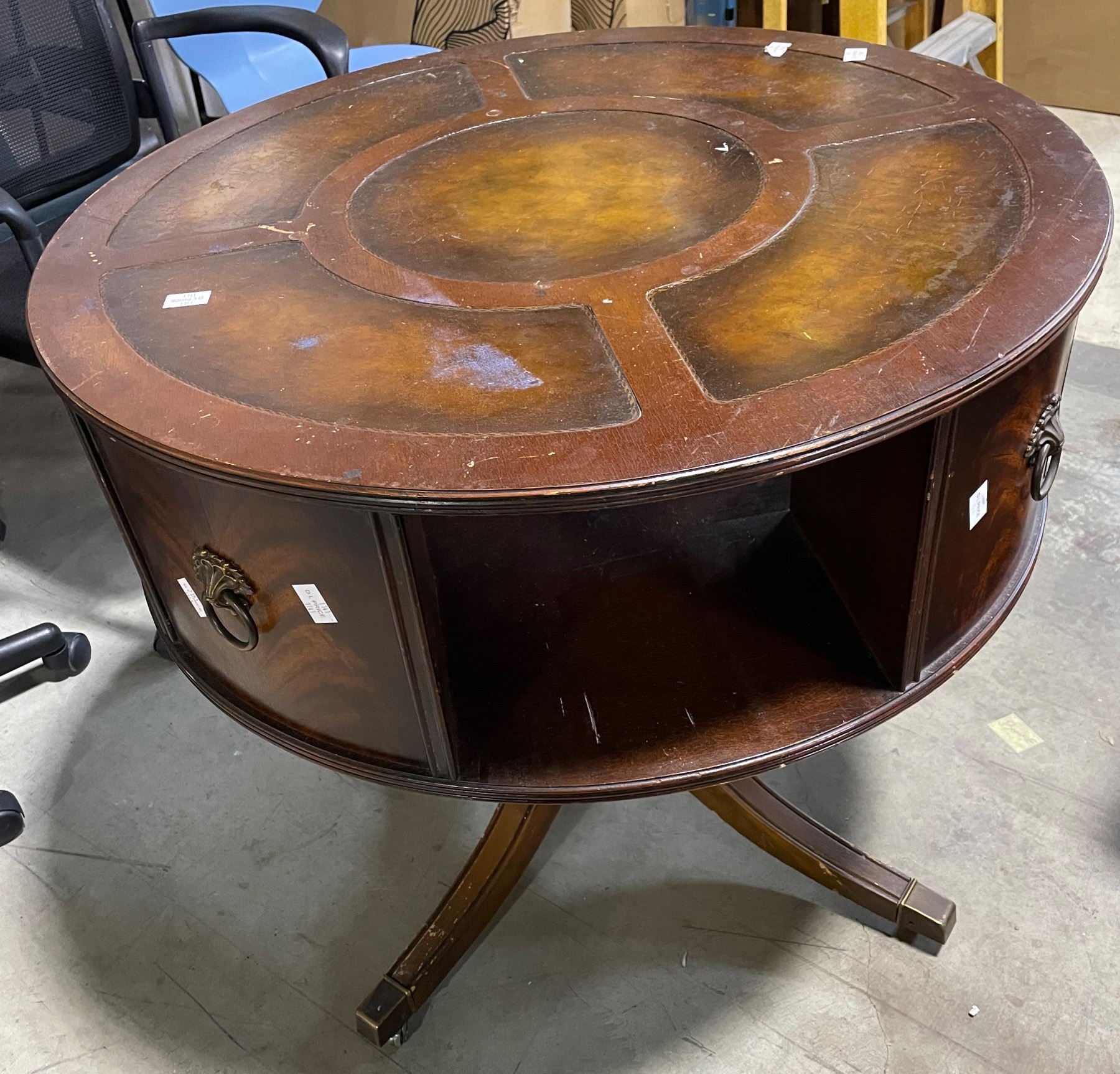 Antique French Regency Style Revolving Bookcase Drum Table - 32" Diameter