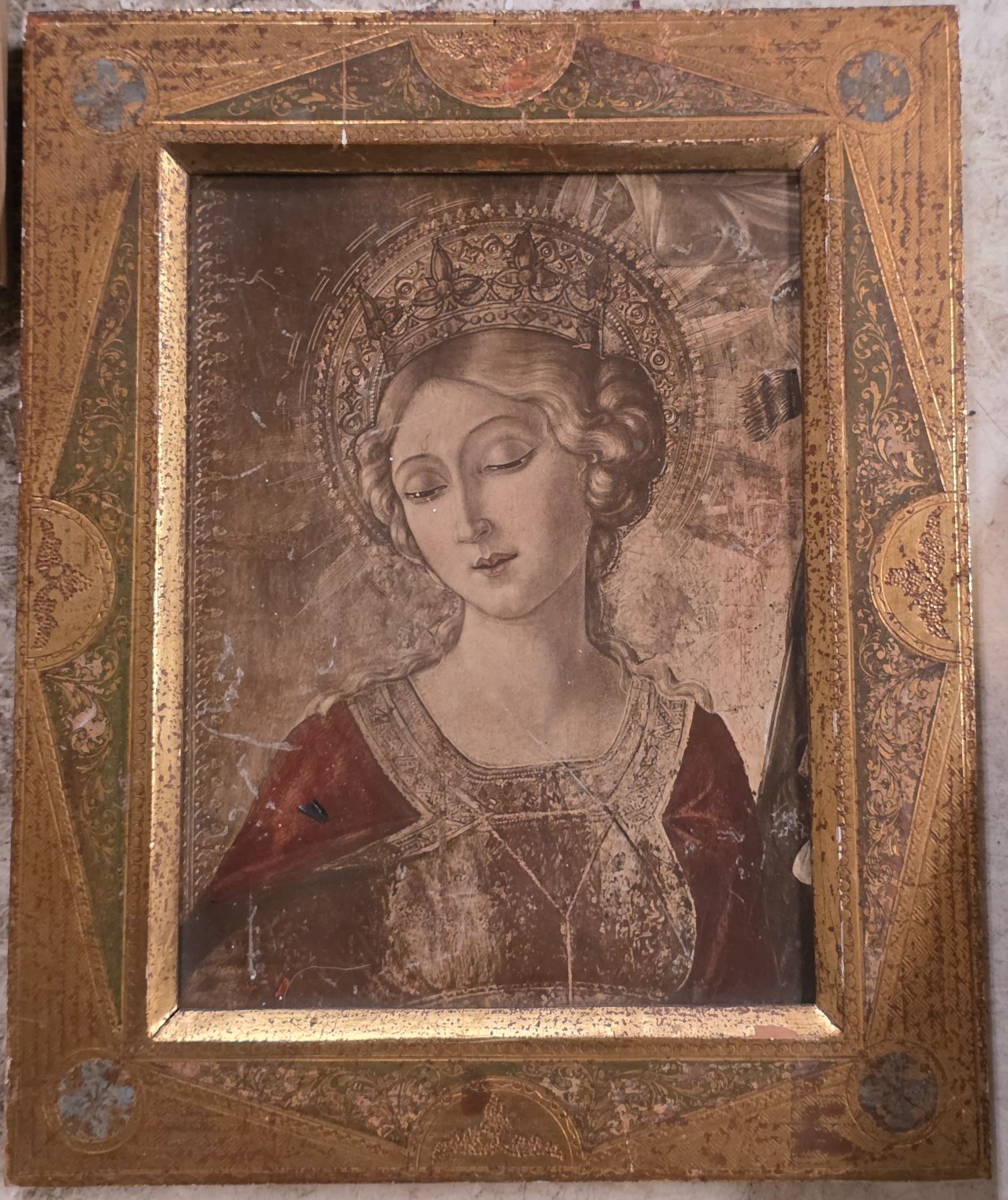 Antique Italian Renaissance Style Madonna Portrait in Ornate Gilt Frame