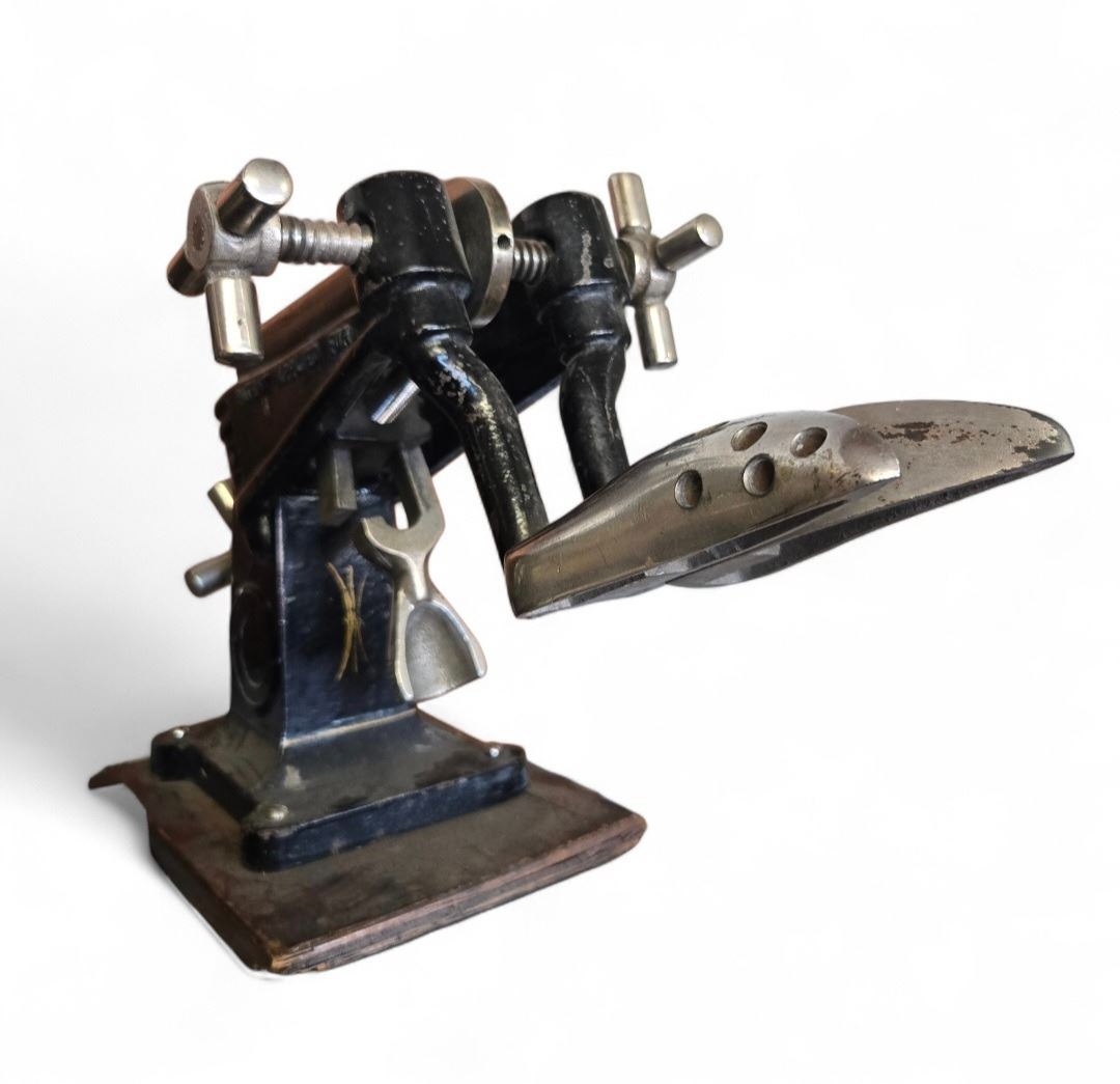 Antique Paragon shoe stretcher cobbler's machine made of cast iron from the early 20th century. Features sturdy construction typical of cobbler's tools from this era, designed for stretching and shaping footwear. Item is as pictured, reflecting its condition and historical craftsmanship.