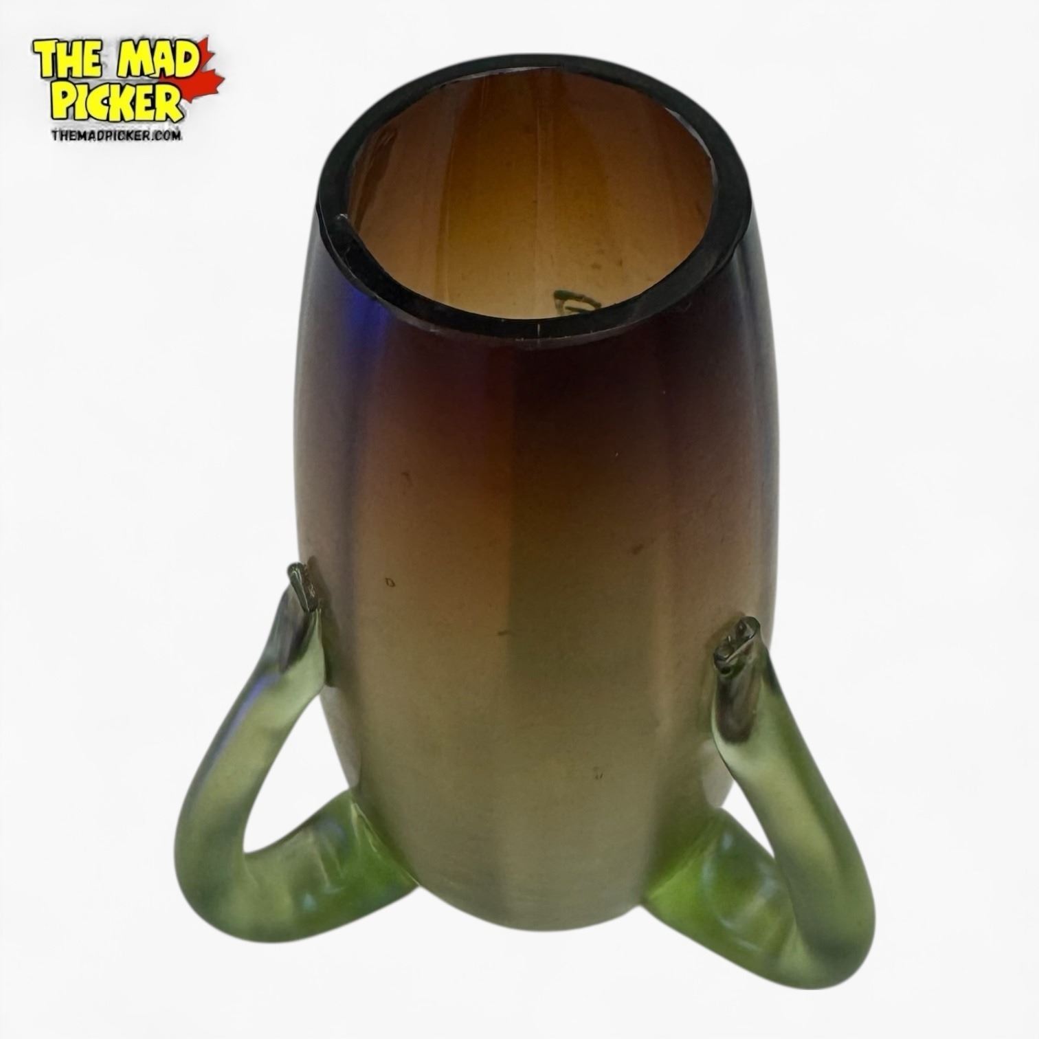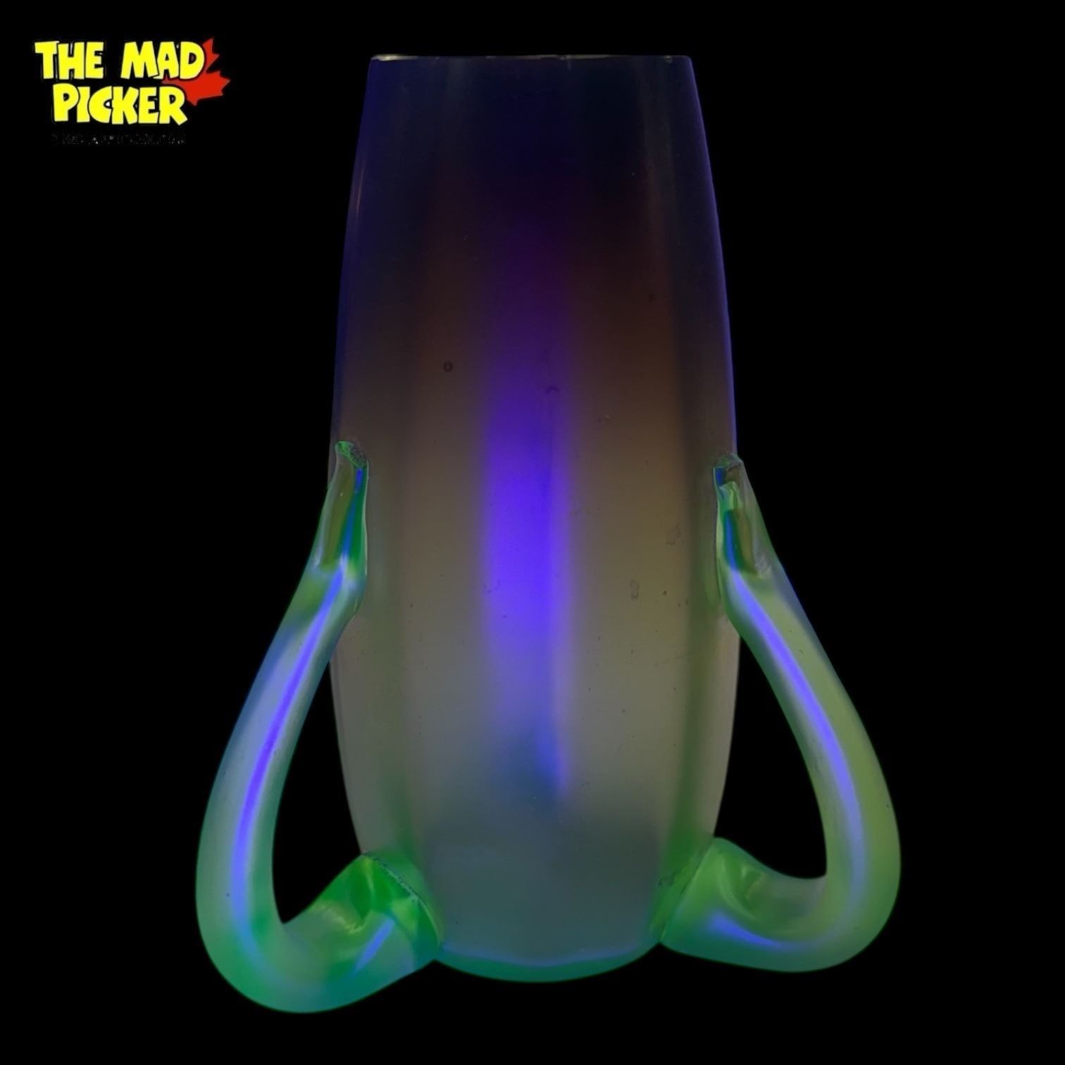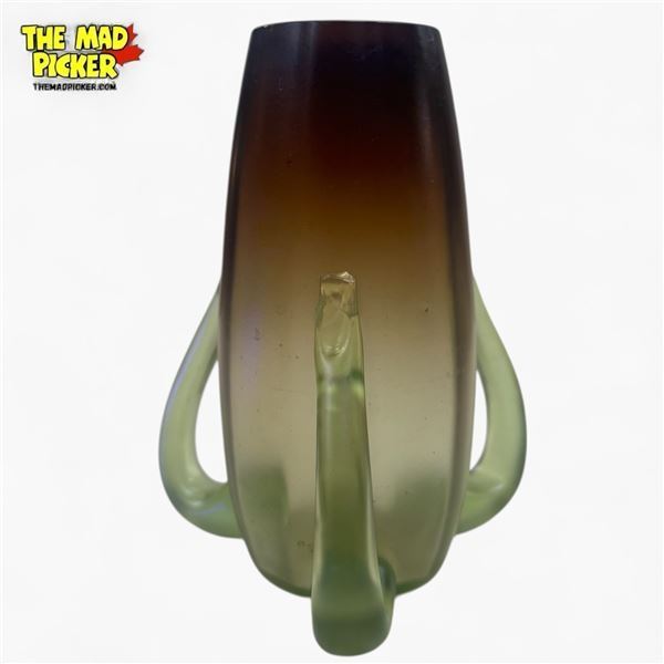Antique Satin & Uranium Glass "Tadpole Vase" Circa 1910 - Attributed to Wilhelm Kralik S�hne - Tiny chip in the top rim