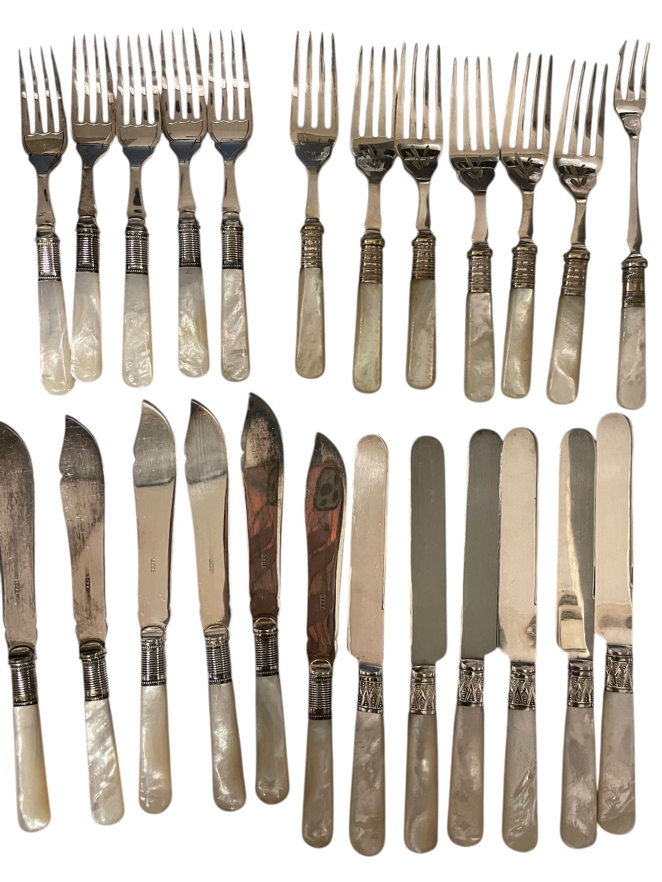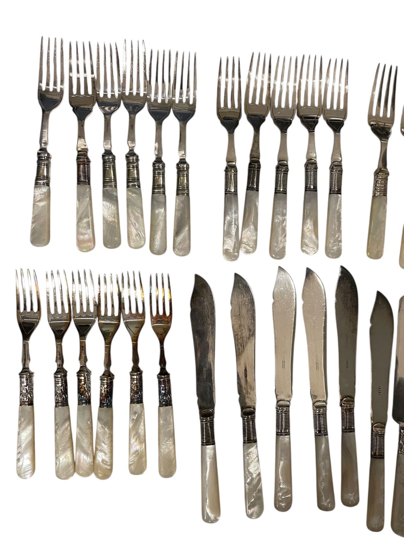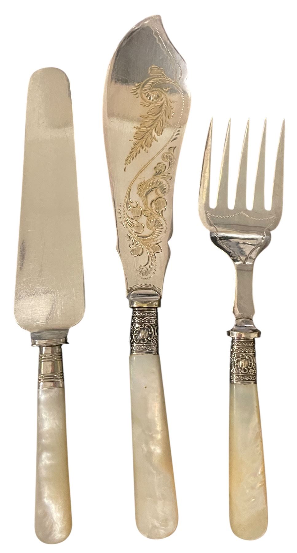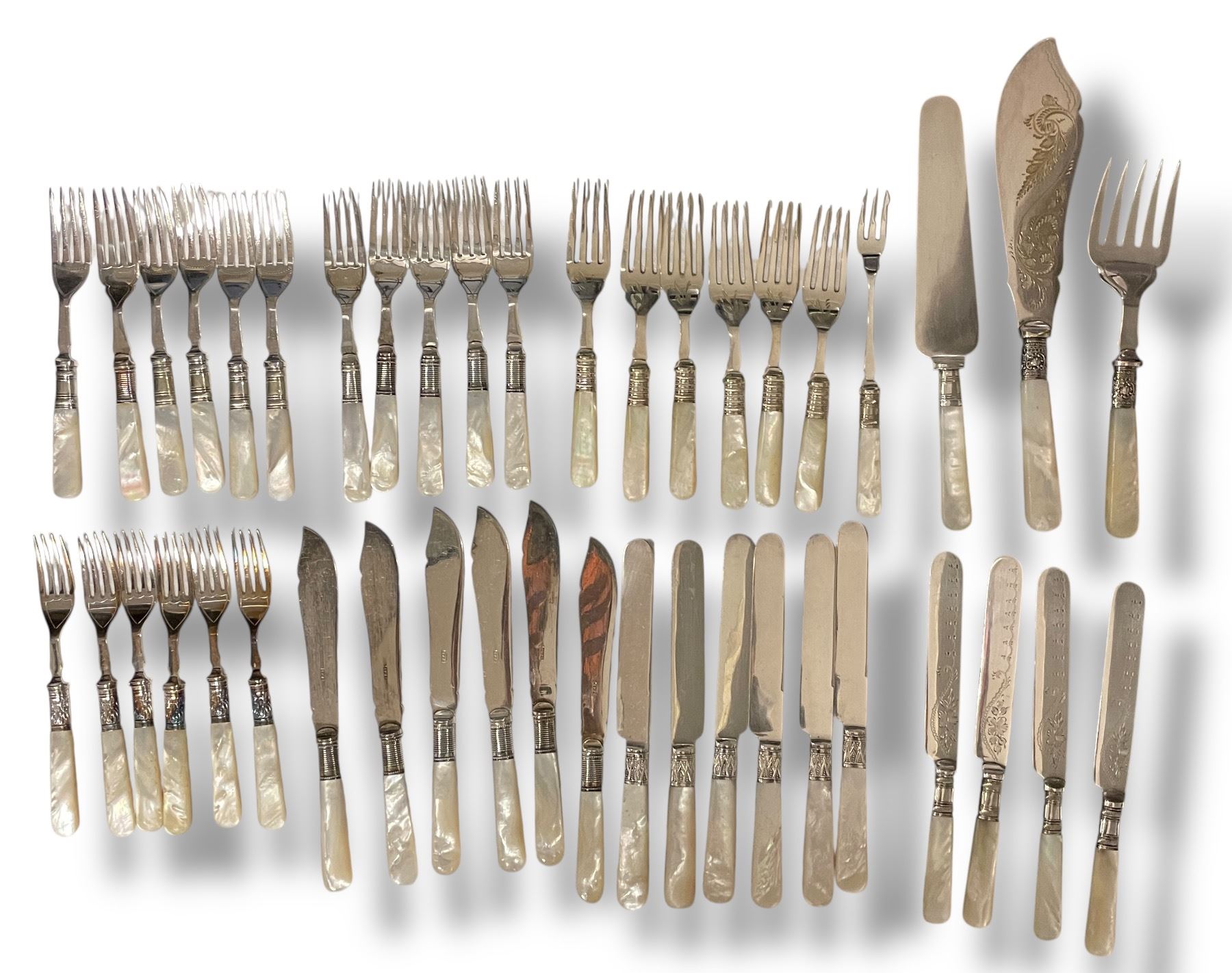 Antique Set of Pearloid Handled Flatware with Serving Pieces