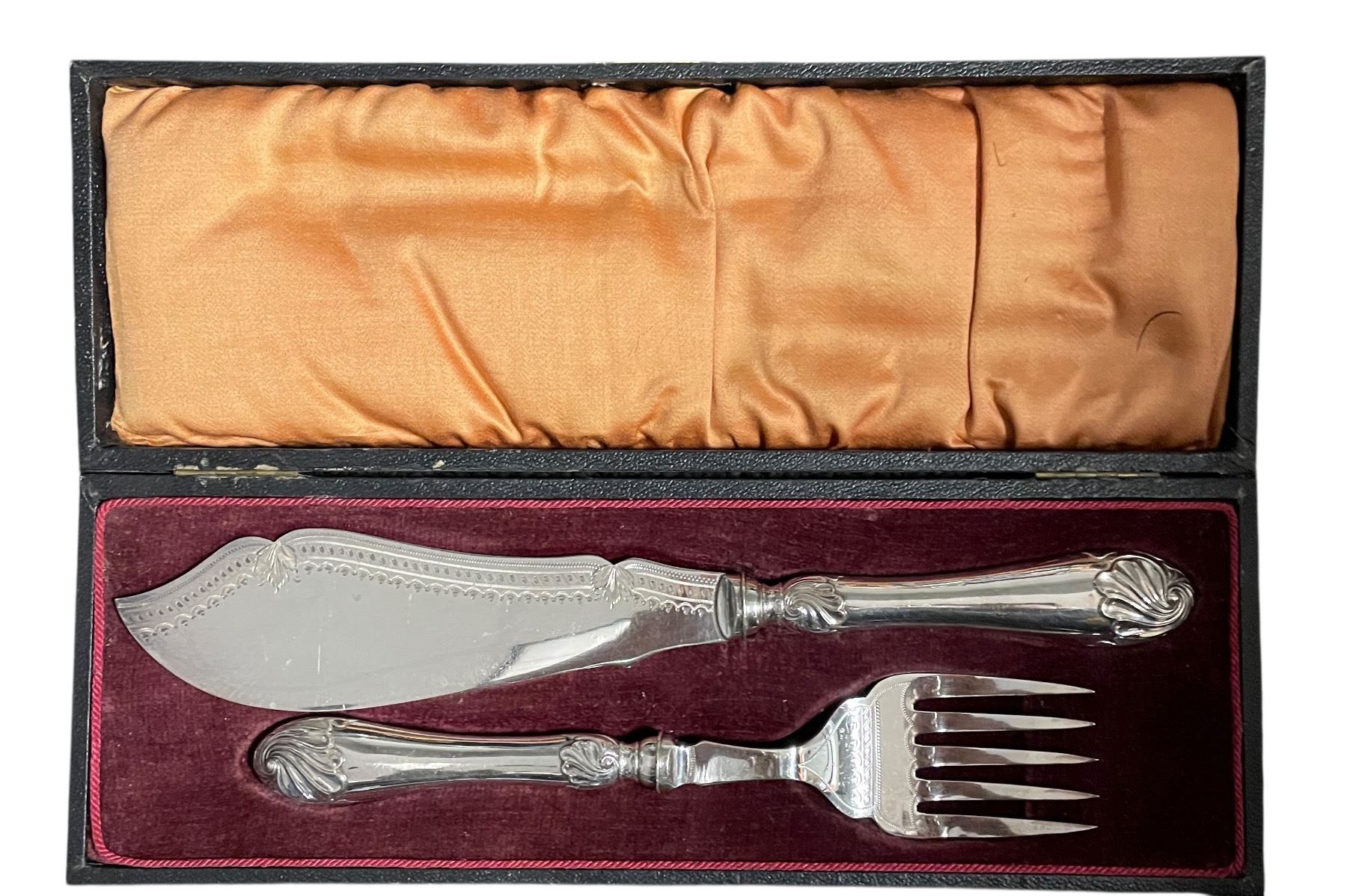 Antique Silver Plated Dessert Serving Set in Fitted Case