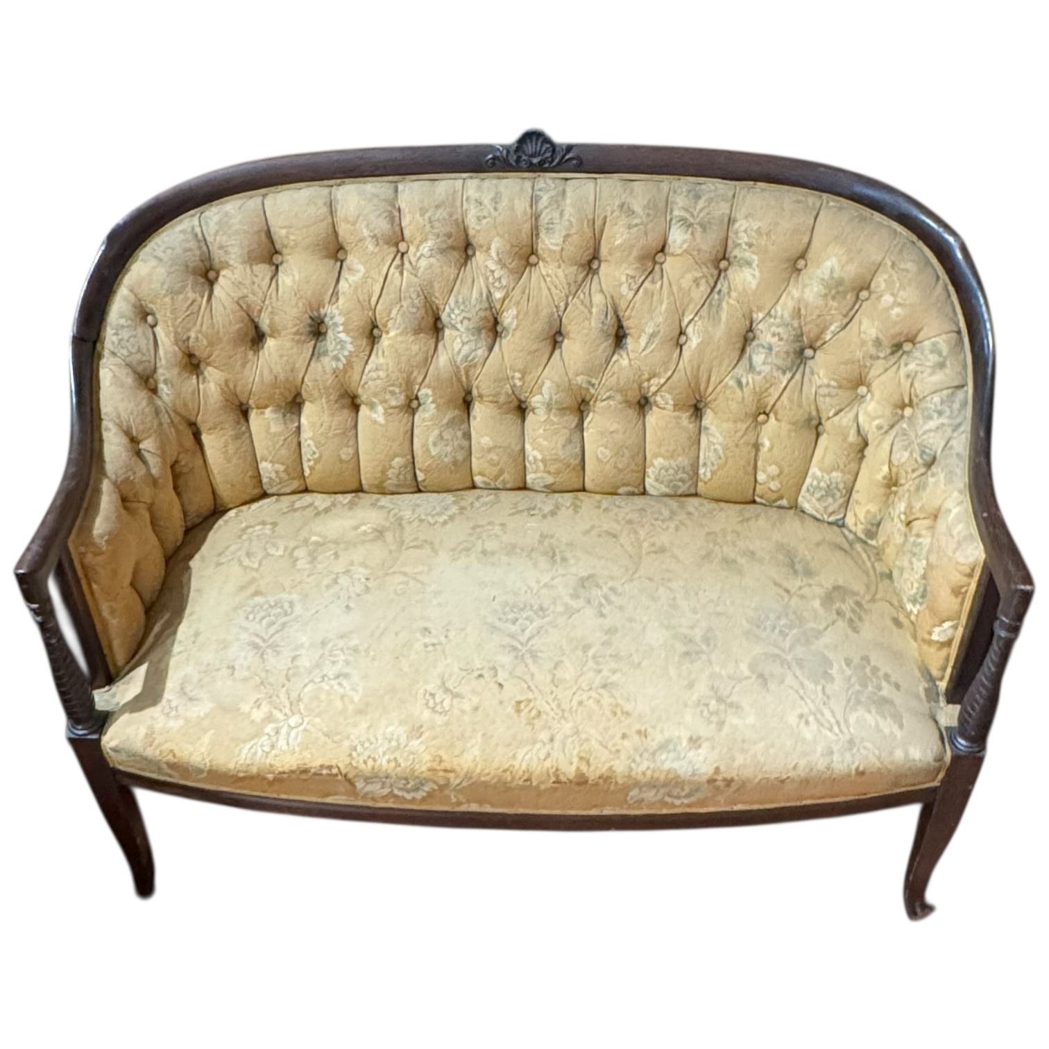 Antique Victorian Mahogany 46" Sofa with Button Tufted Back