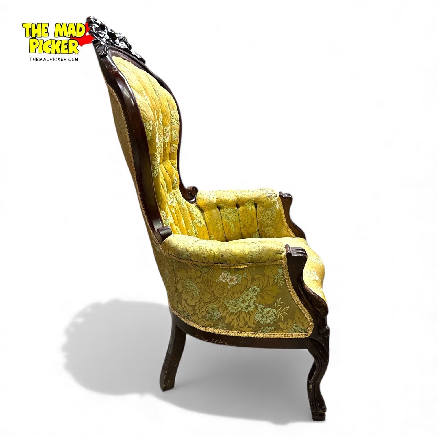 Antique Victorian Parlor Chair Circa 1880's Balloon Back in Mahogany w Tufted Upholstery #1