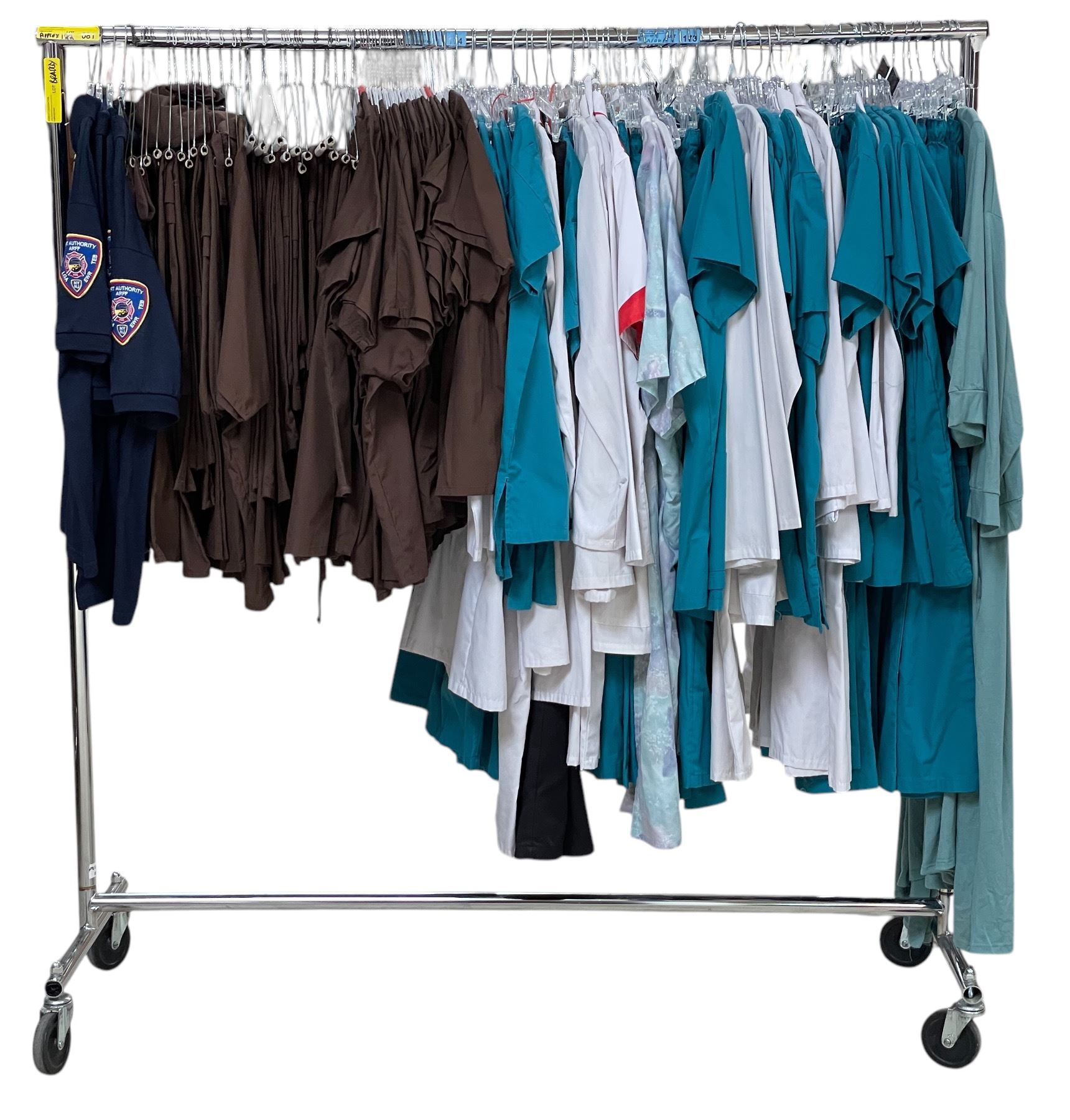 Approx 122 Pieces of Wardrobe Clothing - Port Authority, Brown Scrubs, Blue Scrubs, Doctor Shirts, Etc.