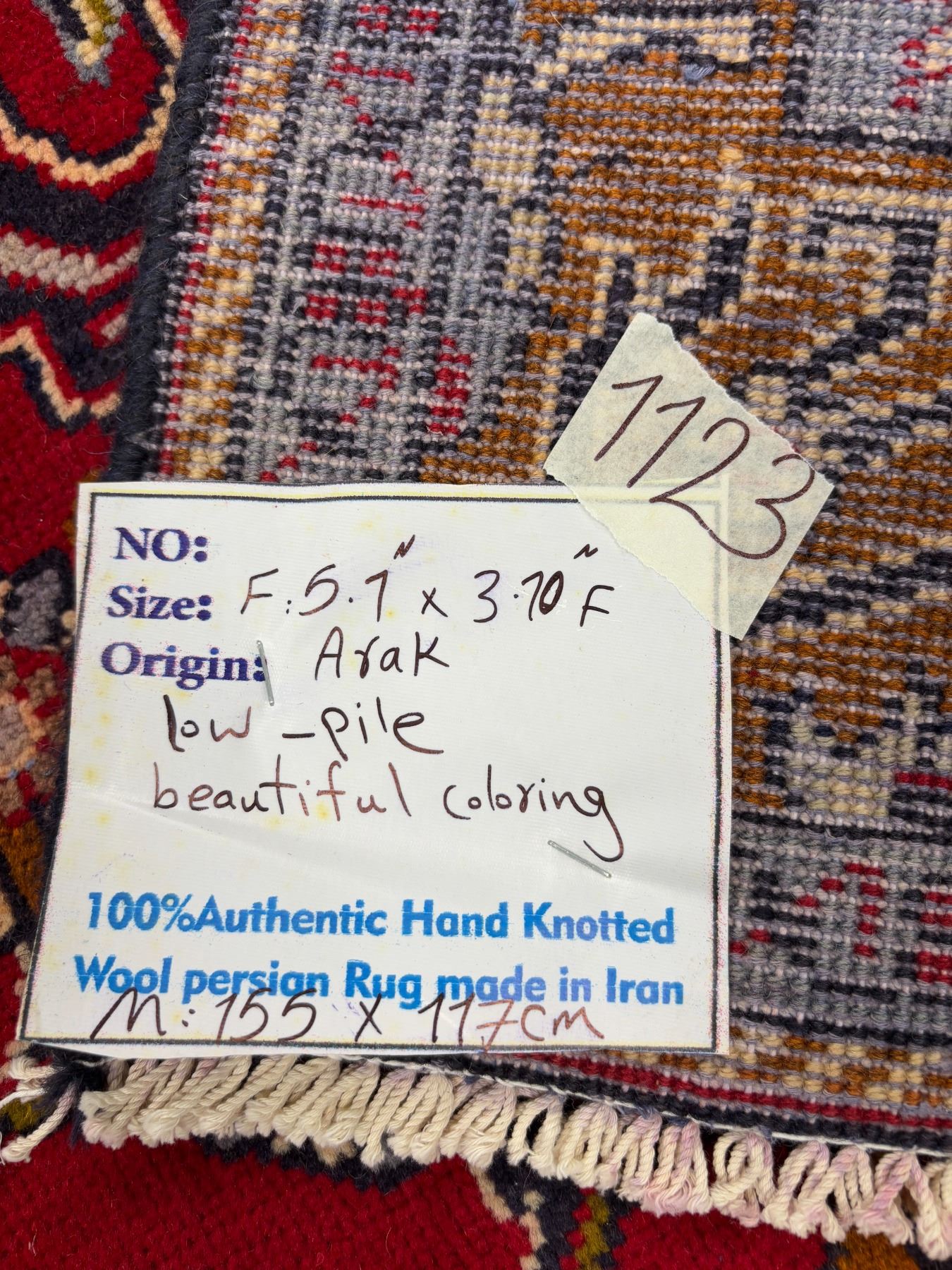 Arak 100% Authentic Hand Knotted Wool Persian Rug Handmade in Iran Low pile (These carpets have been washed professionally, and for this reason there are no 3tears or dirt in this carpet and it will be delivered to you clean and smooth. Don't miss the opportunity to buy such a carpet) Size: 5.1' × 3.10'
