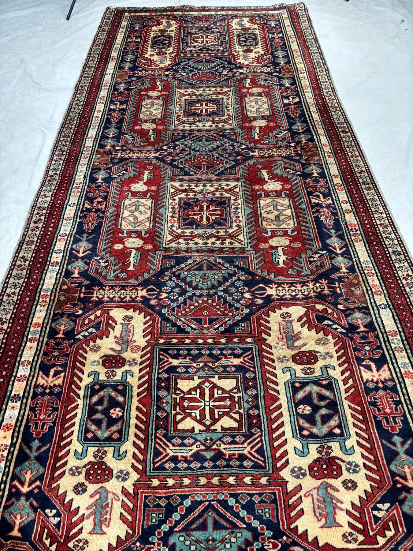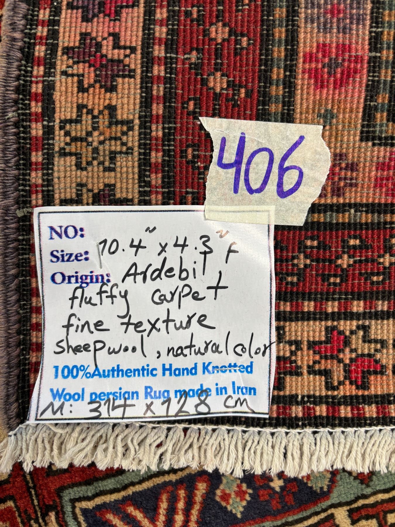 Ardebil - 100% Authentic Hand Knotted Wool Persian Rug - Handmade in Iran - 10.4" x 4.3 " ft - No: 105