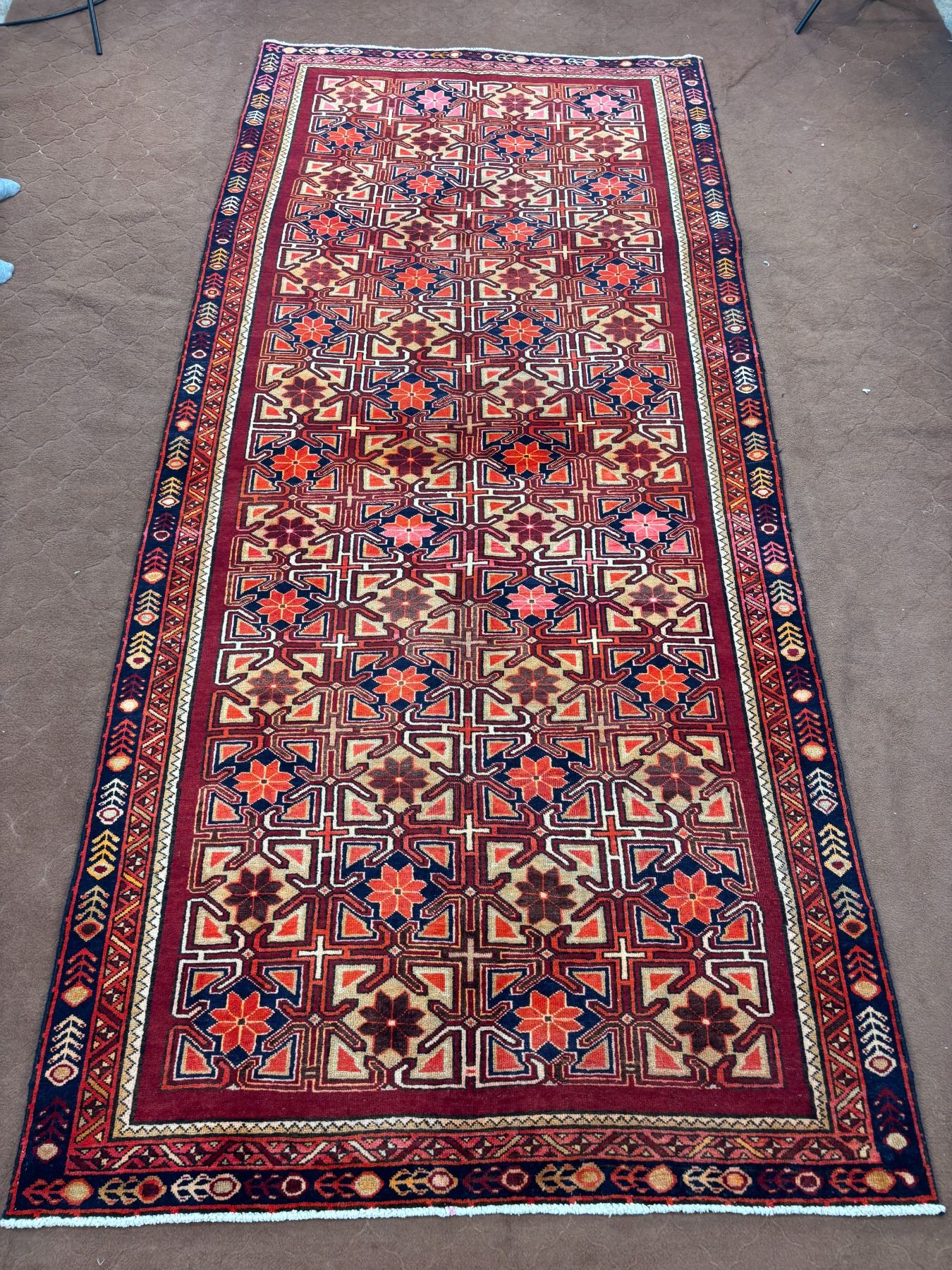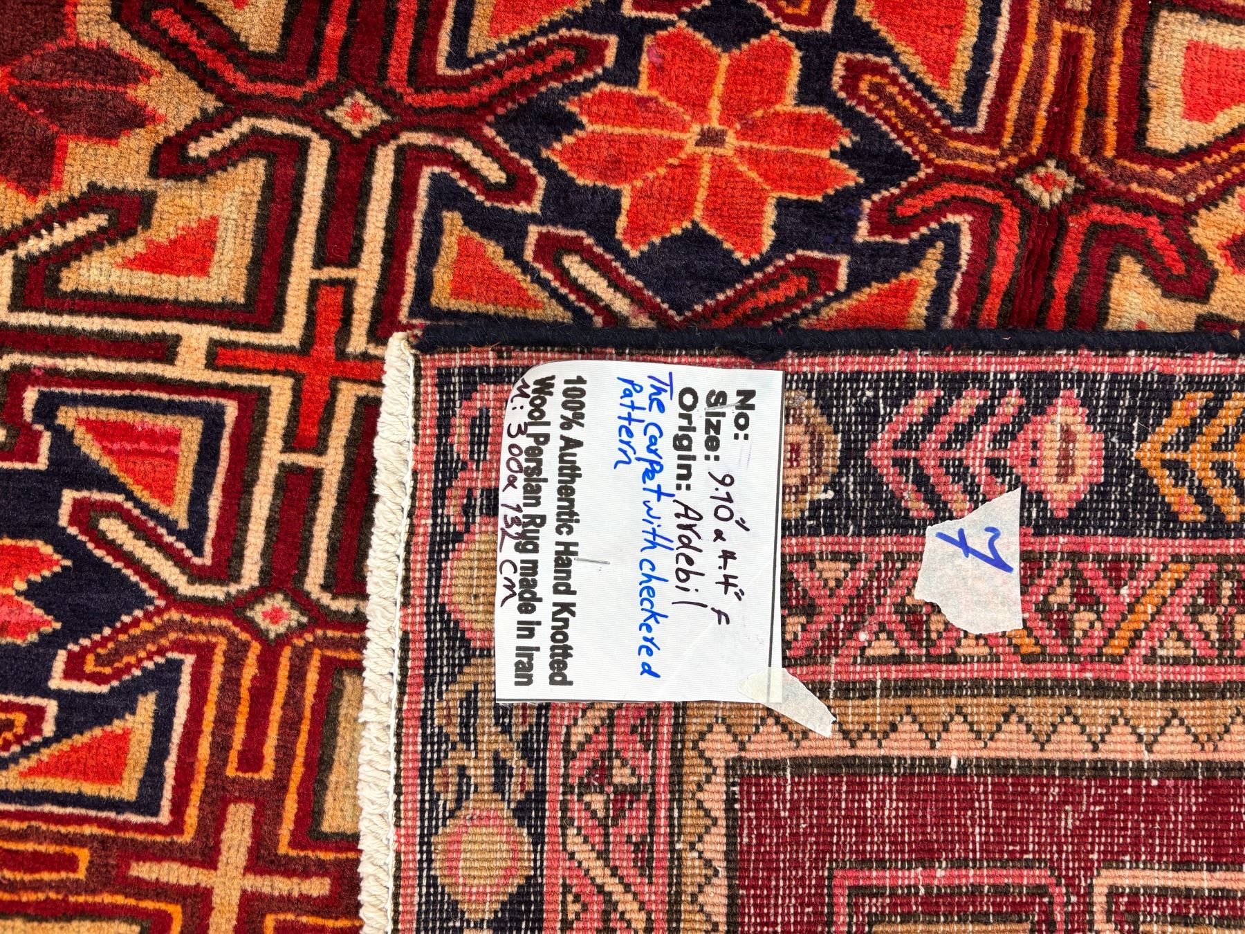 Ardebil 100% Authentic Hand Knotted Wool Persian Rug Handmade in Iran The carpet with checkered pattern (These carpets have been washed professionally, and for this reason there are no 3tears or dirt in this carpet and it will be delivered to you clean and smooth. Don't miss the opportunity to buy such a carpet) Size: 9.10' × 4.4'