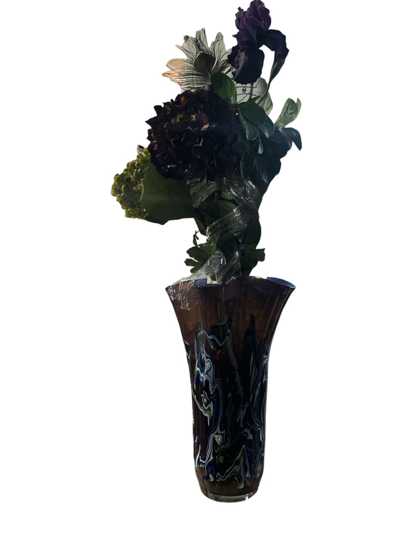 Art Glass Floor Vase with Artificial Floral Arrangement