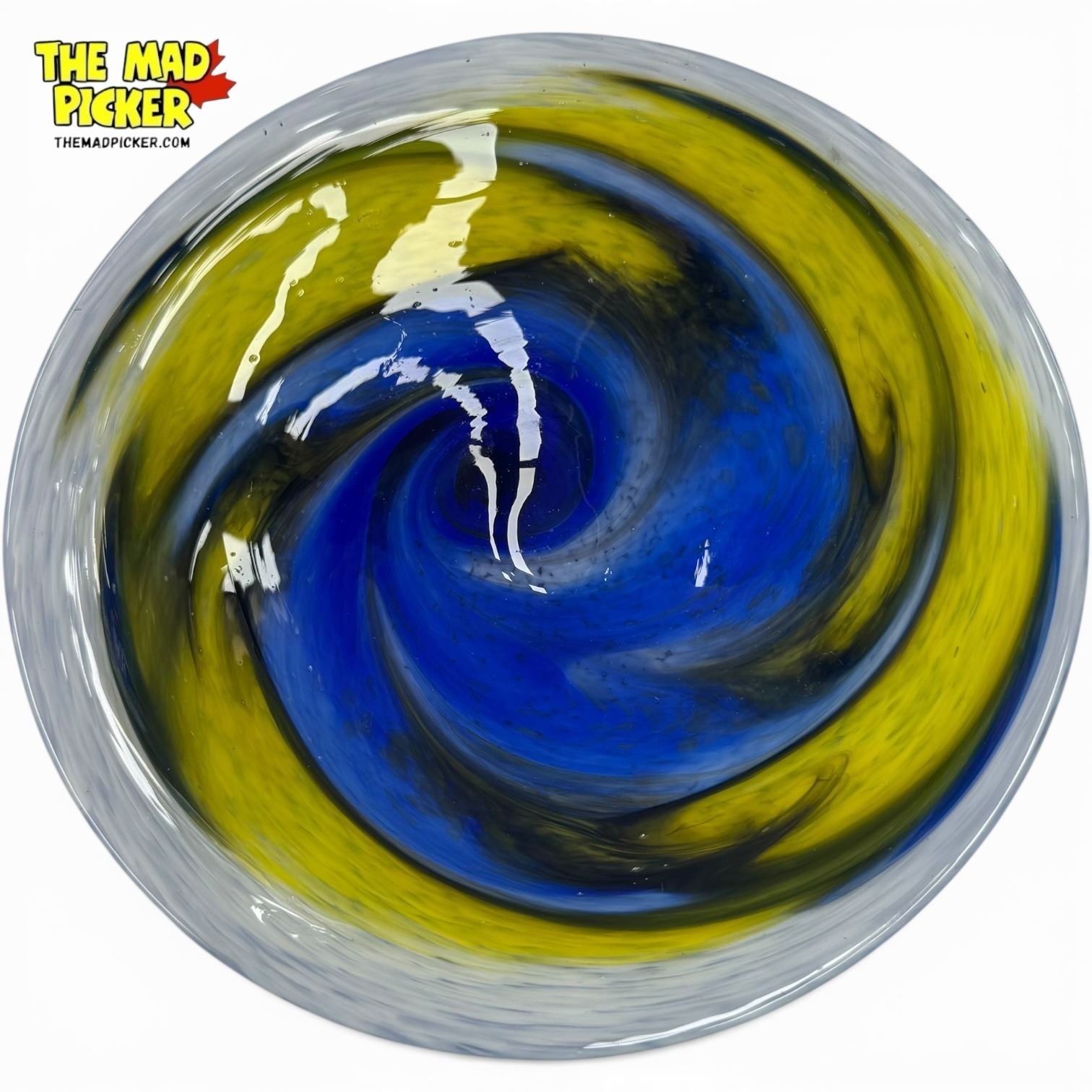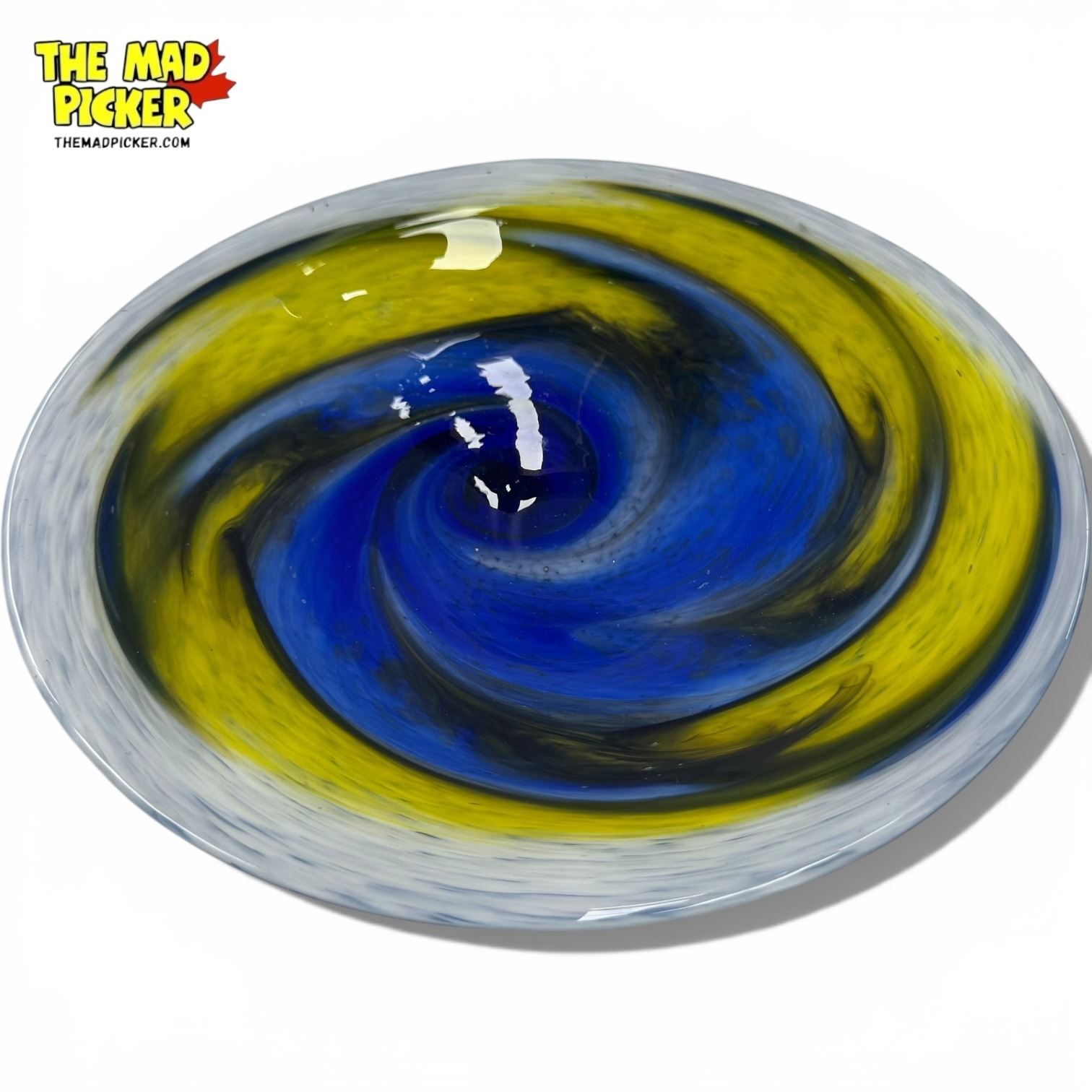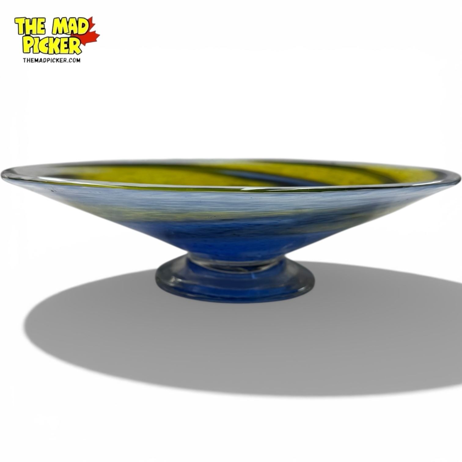 Art Vargas Canadian Hand Blown Art Glass Pedestal Bowl - 3" tall x 10" diameter