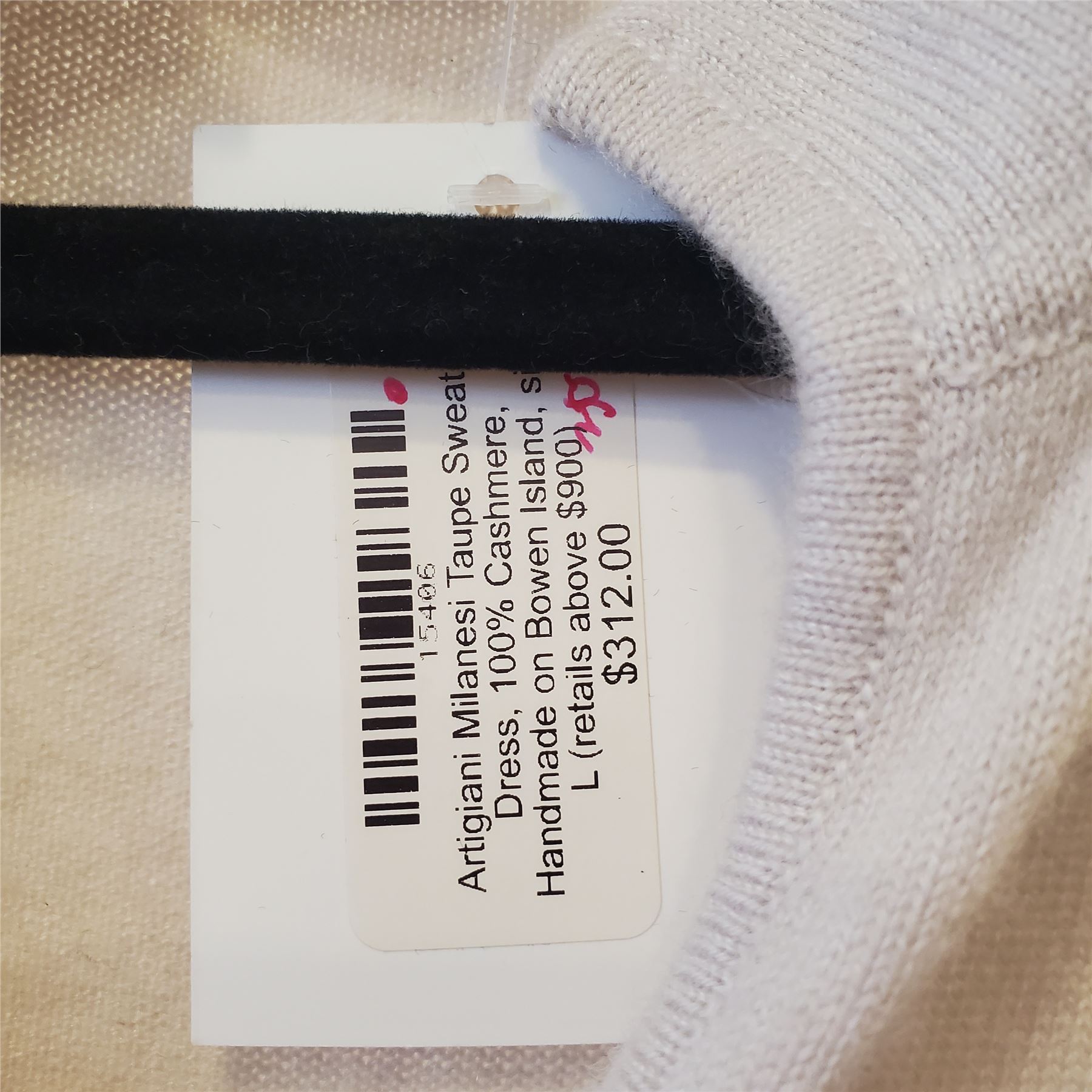 Artigiani Milanesi Taupe Sweater Dress, 100% Cashmere, Size L - Homemade Bowen Island, R.V. $900